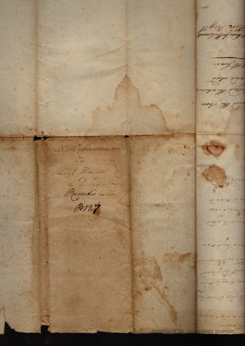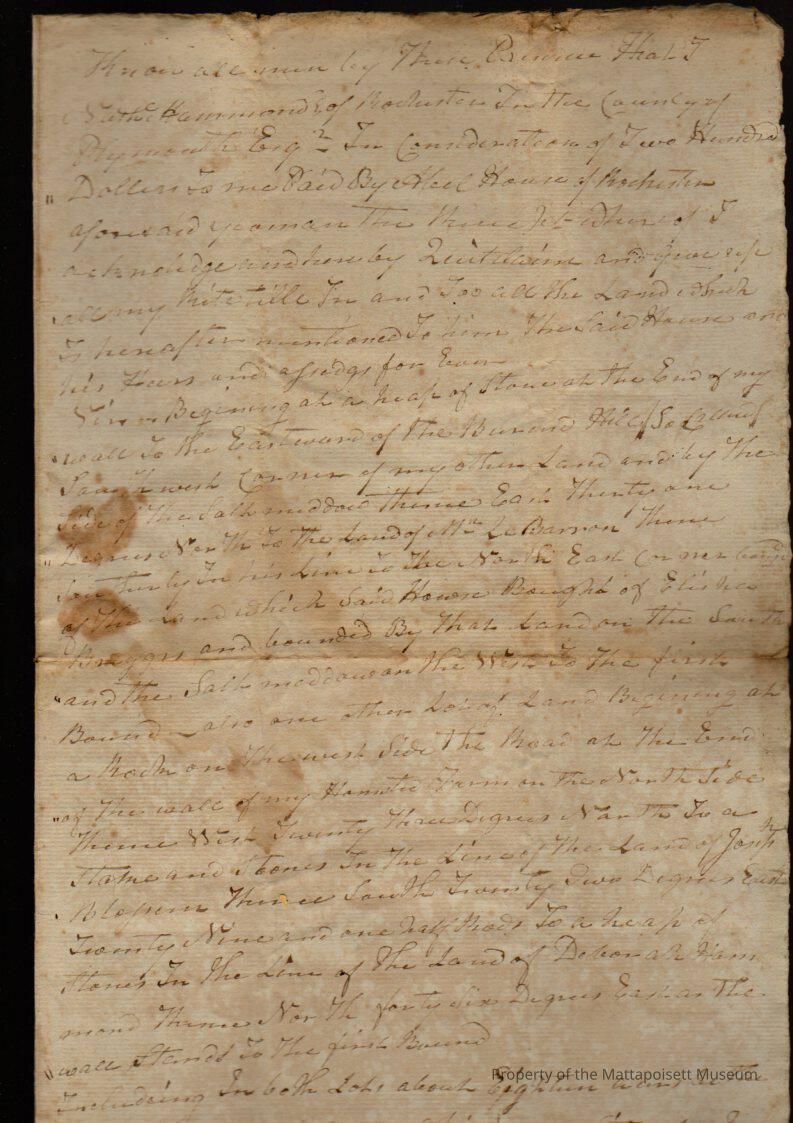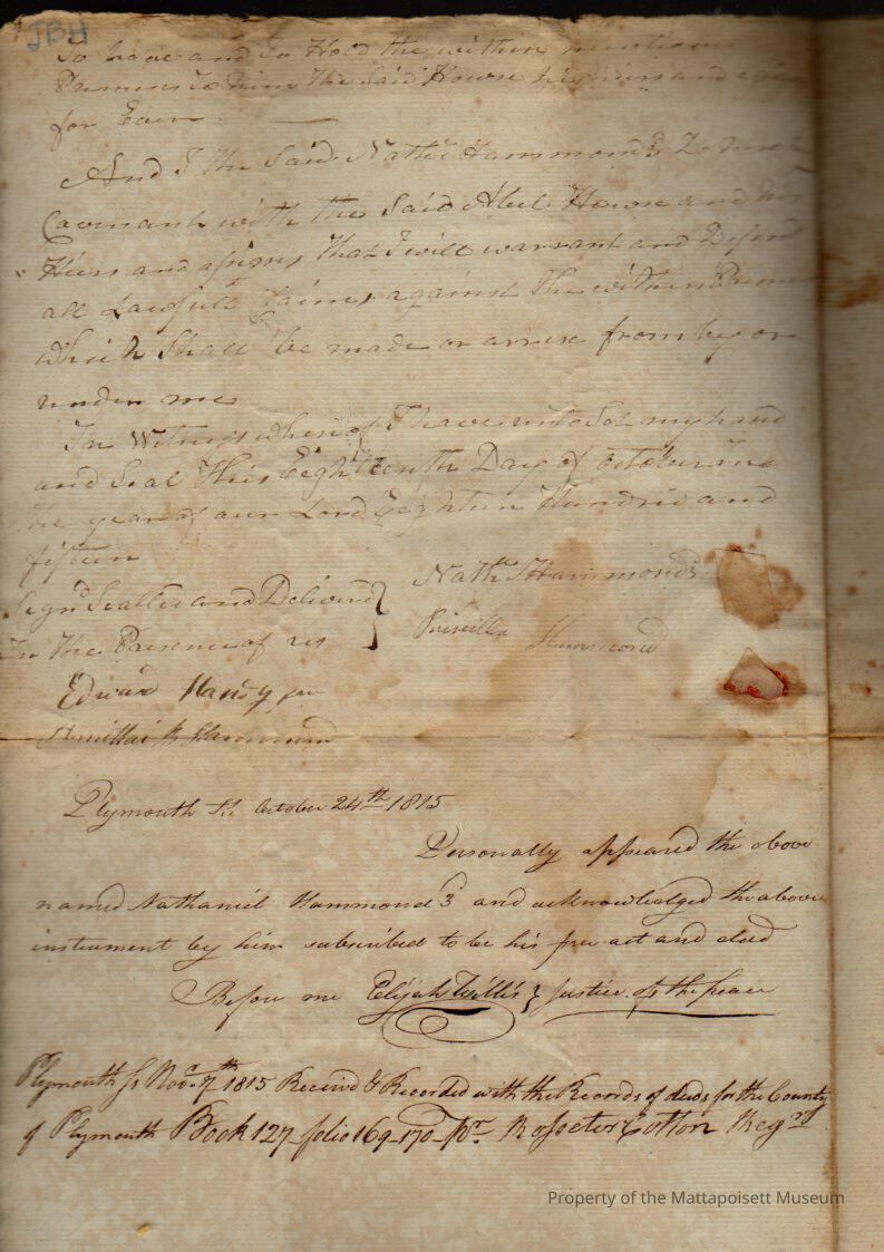 Deed, Nathaniel and Pricilla Hammond to Abel House. Lot and house for $200, book 127, folio 169-170.Collection
