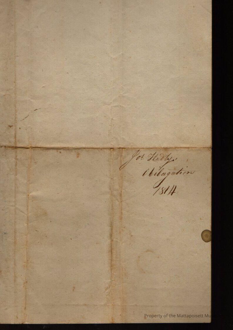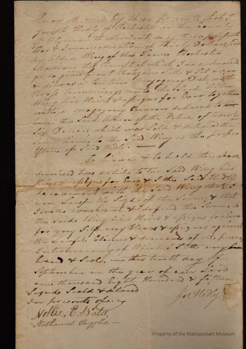Obligation/bill, Joseph Hadley to Alden Wing. Mohogany desk with brass trimmimngs for $30.Collection