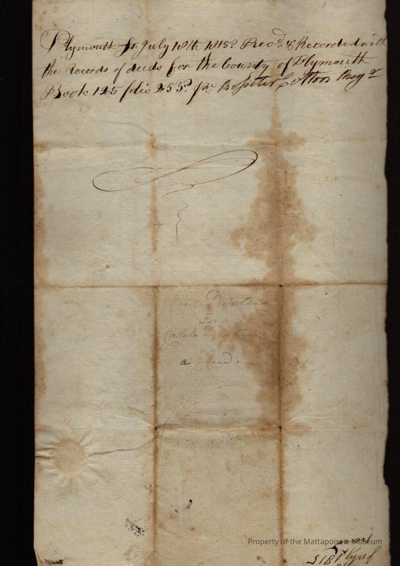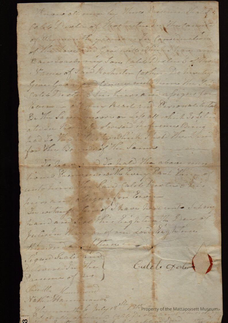 Deed, Caleb Dexter to Caleb Dexter 3rd. In consideration of love and good will toward son, real and personal estate. Book 125, folio 255.Collection