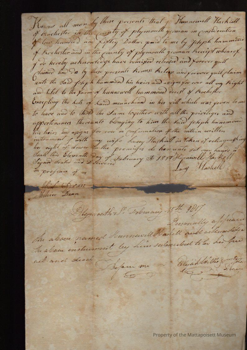 Deed, Hunnewell and Lucy Haskell to Joseph Hammond. Lots of land, $250.Collection