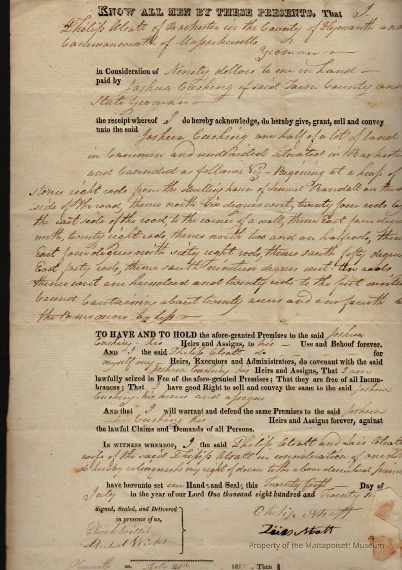 Deed, Phillip Atsatt to Joshua Cushing, $90, book 161, folio 188Collection