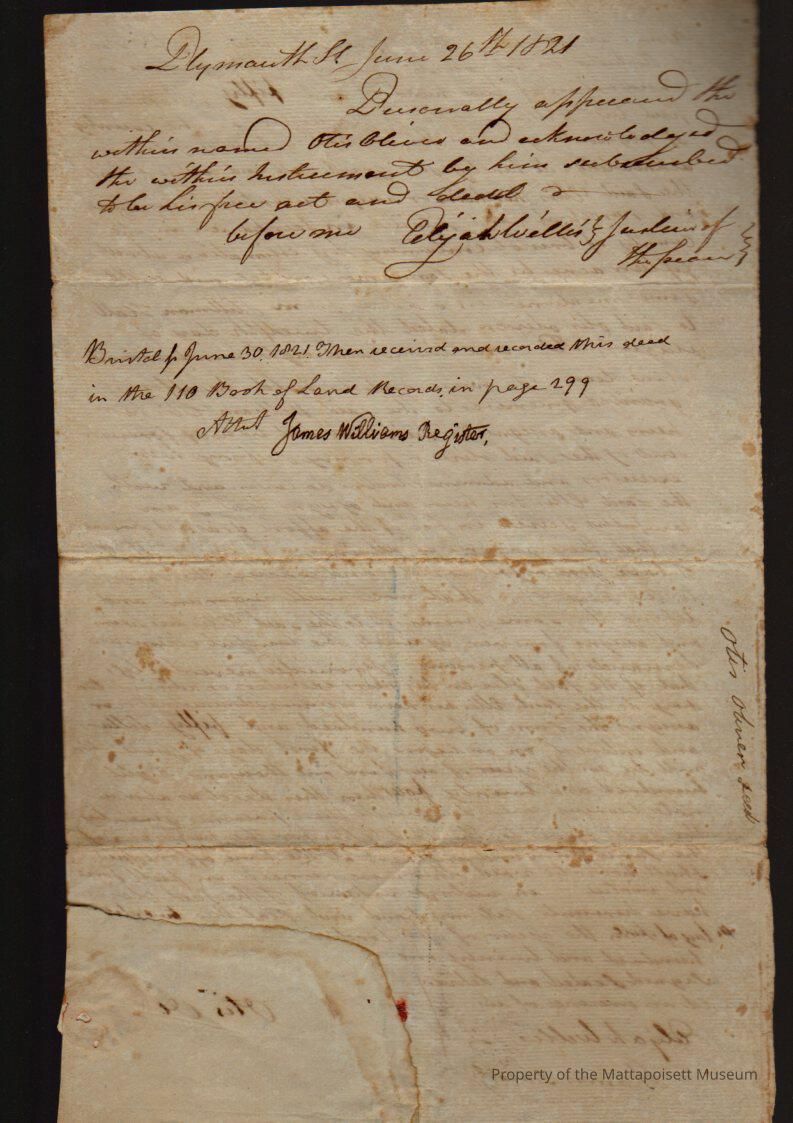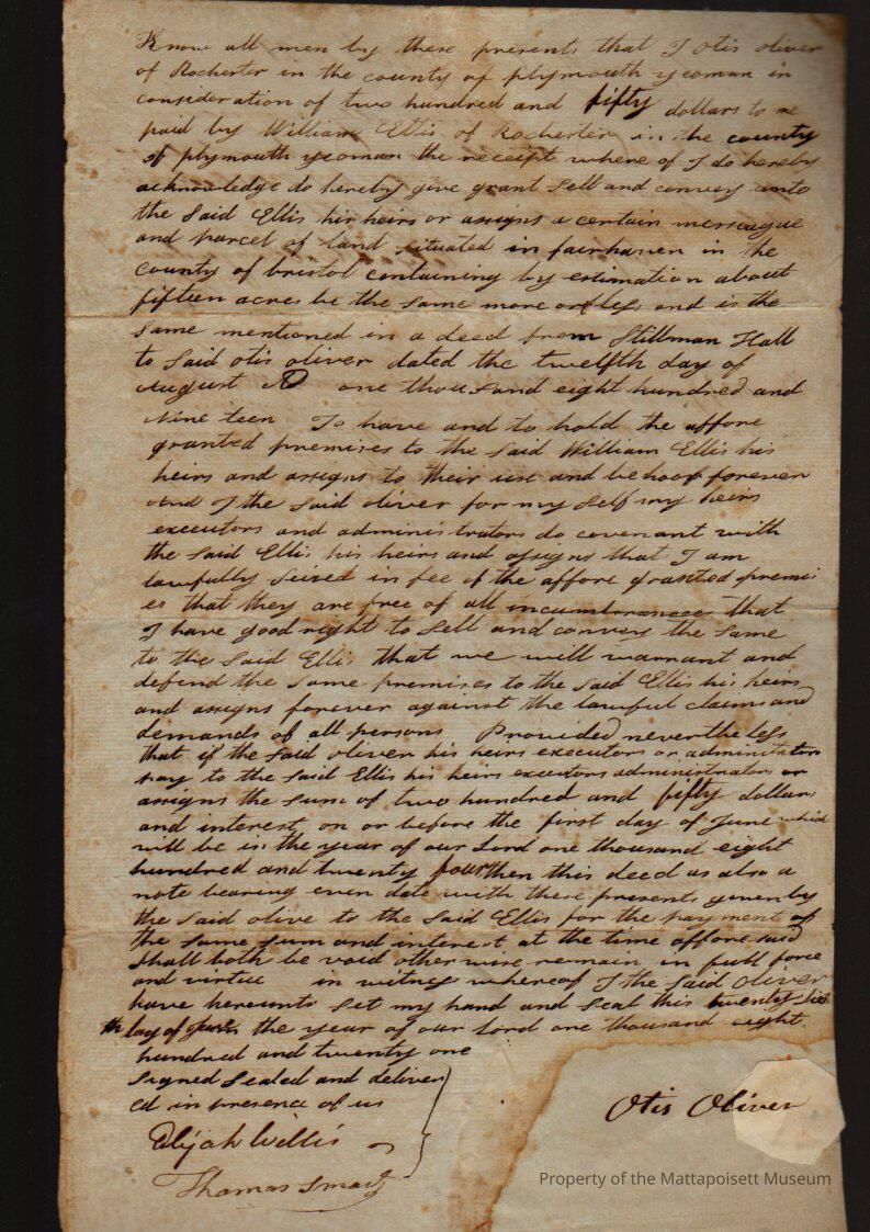 Deed, Otis Oliver to William Ellis, $250, book 110, page 299.Collection