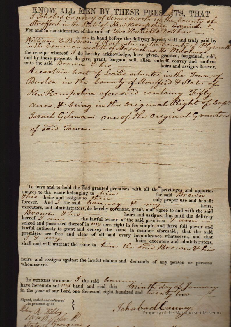 Deed, Ichabod Canney (of New Hampshire) to William E. Brown, $200.Collection