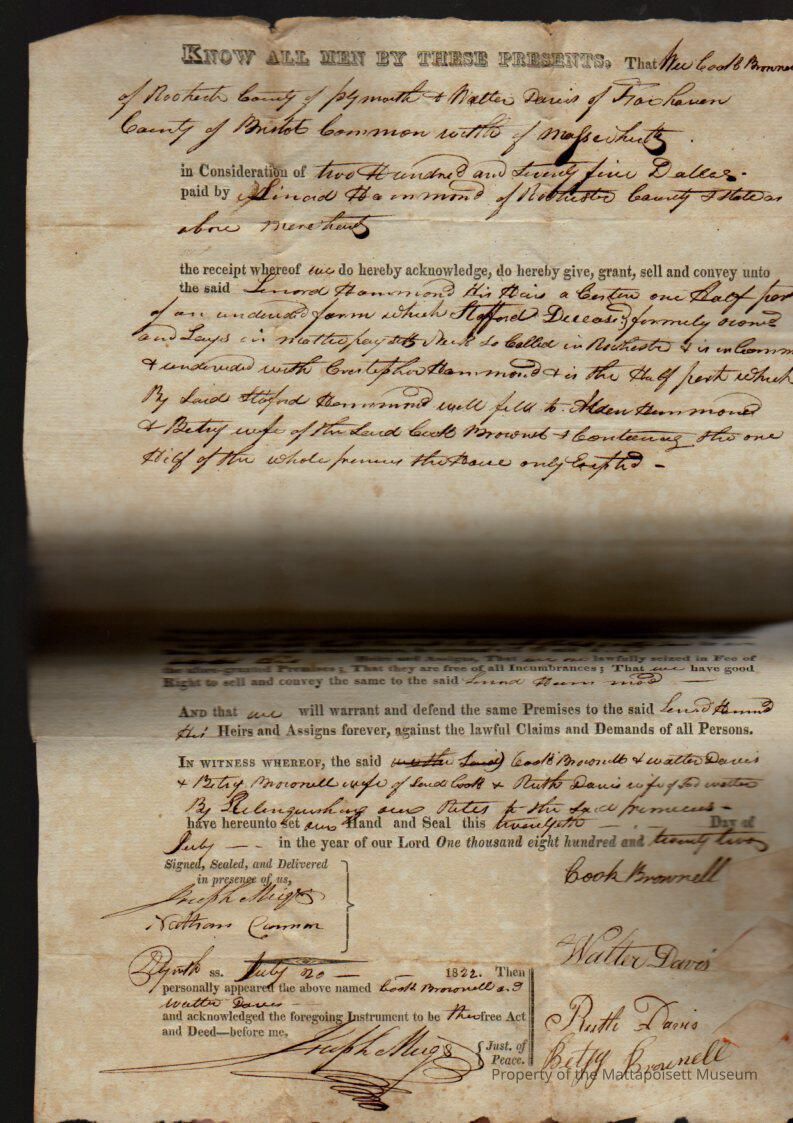 Deed, Cook & Betsy Brownell and Walter & Ruth Davis to Leonard Hammond, $275, book 118, folio 98.Collection