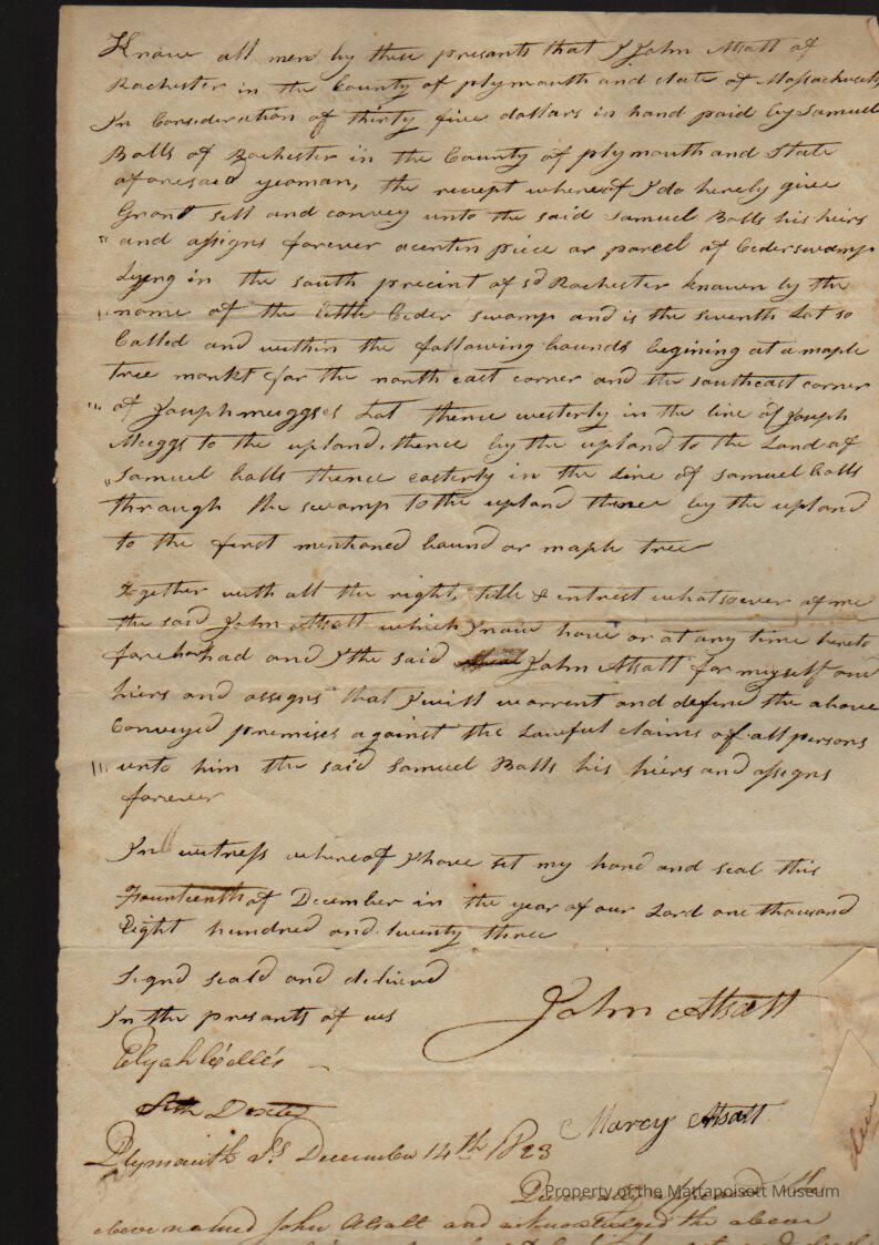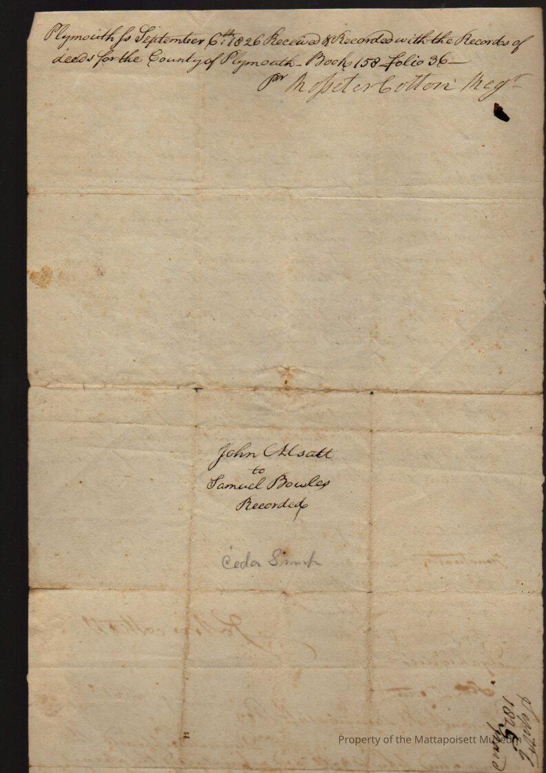 Deed, John & Marcy Atsatt to Samuel Bowles, $35, book 158, folio 96.Collection