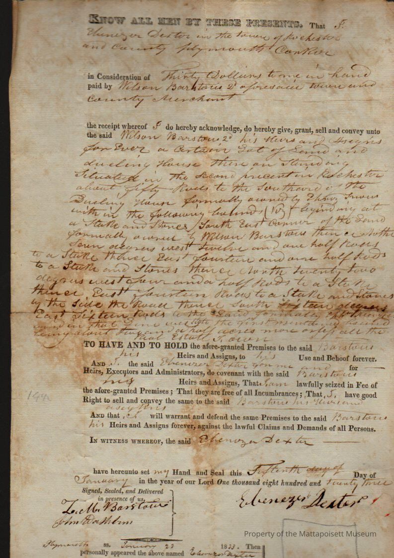 Deed, Ebenezer Dexter to Wilson Barstow Jr., $30, book 148, folio 119.Collection