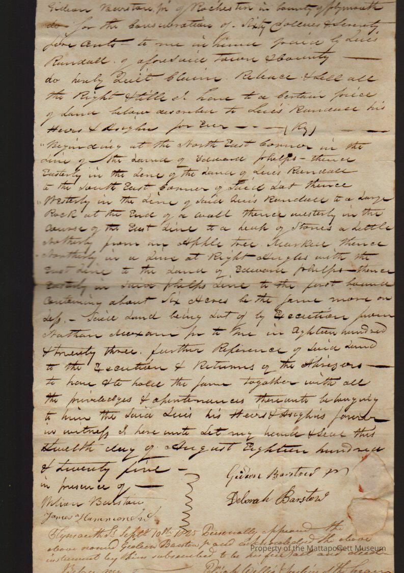 Deed, Gideon & Deborah Barstow to Lewis Randall, $60.75, book 154, folio 131.Collection