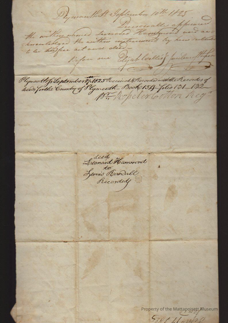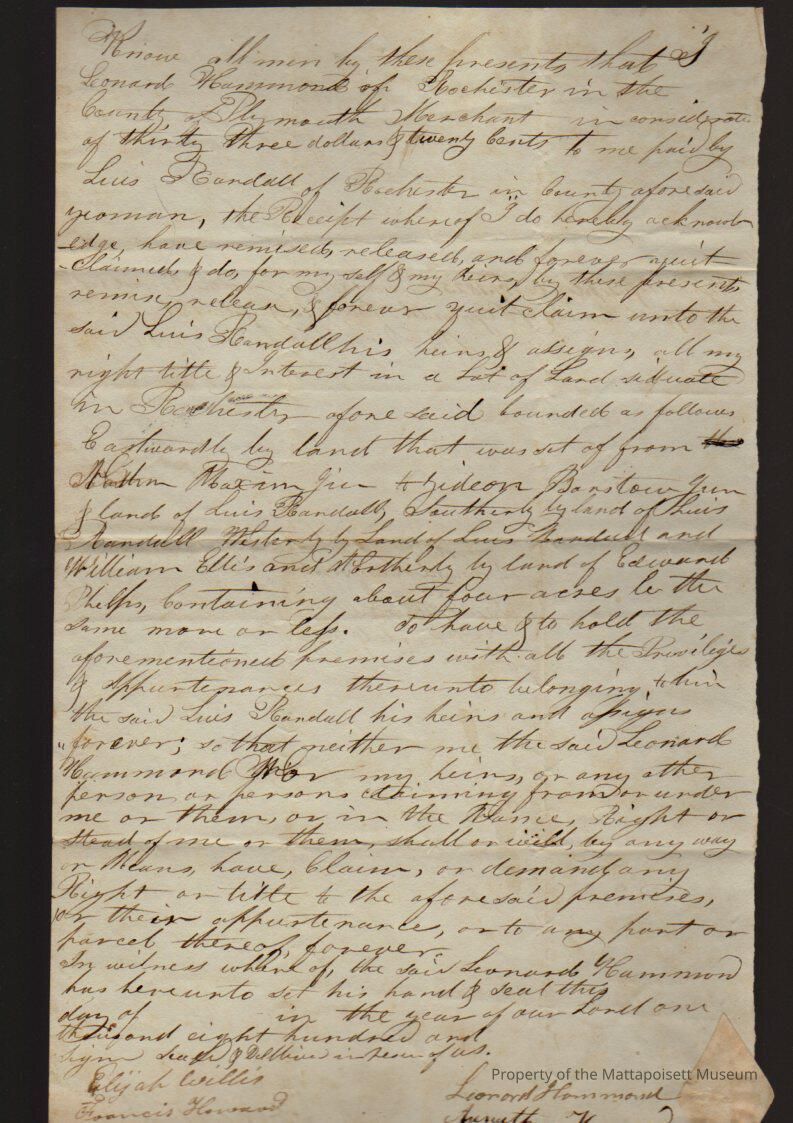 Deed, Leonard (and wife) Hammond to Lewis Randall, $33.20, book 154, folio 131-132.Collection