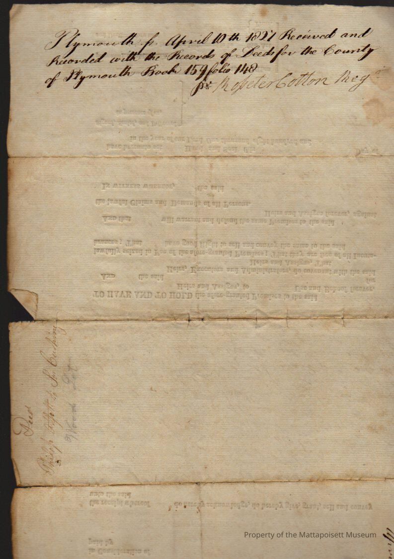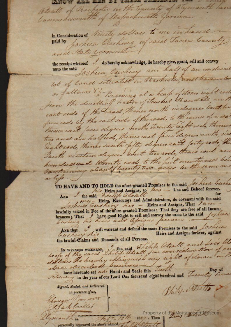 Deed, Phillip Atsatt to Joshua Cushing, $90, book 159, folio 148.Collection