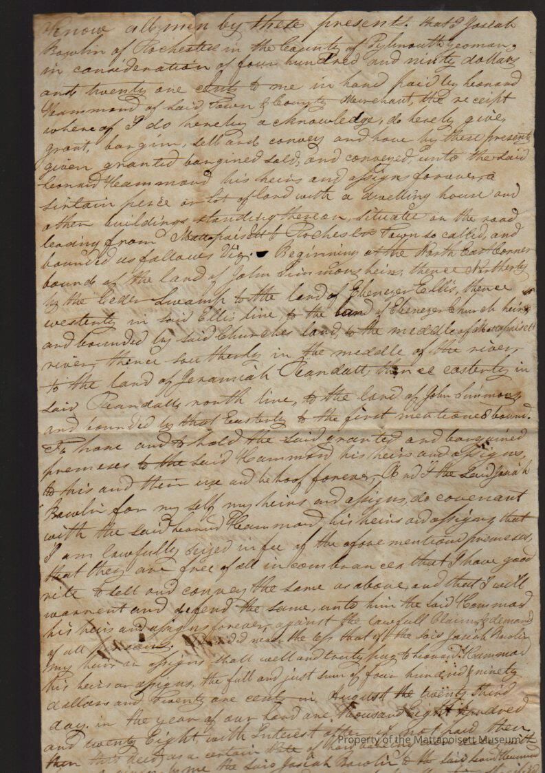 Deed, Josiah Bowlin to Leonard Hammond, $490.21.Collection