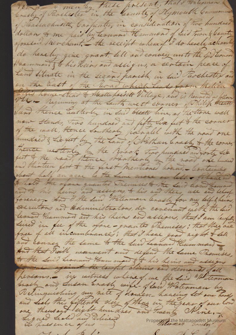 Deed, Waterman Crosby to Leonard Hammond, $200, book 165, folio 246.Collection