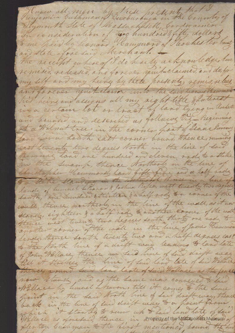 Deed, Benjamin & Laura Cushman to Leonard Hammond, $250.Collection