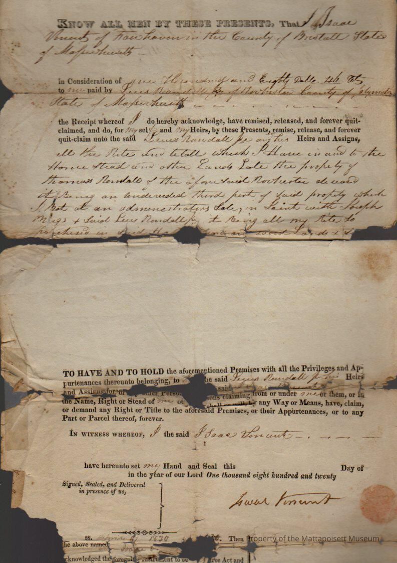 Isaac Vincent of Fairhaven to Lewis Randall (original), for $180.46, book 174, folio 21.Collection