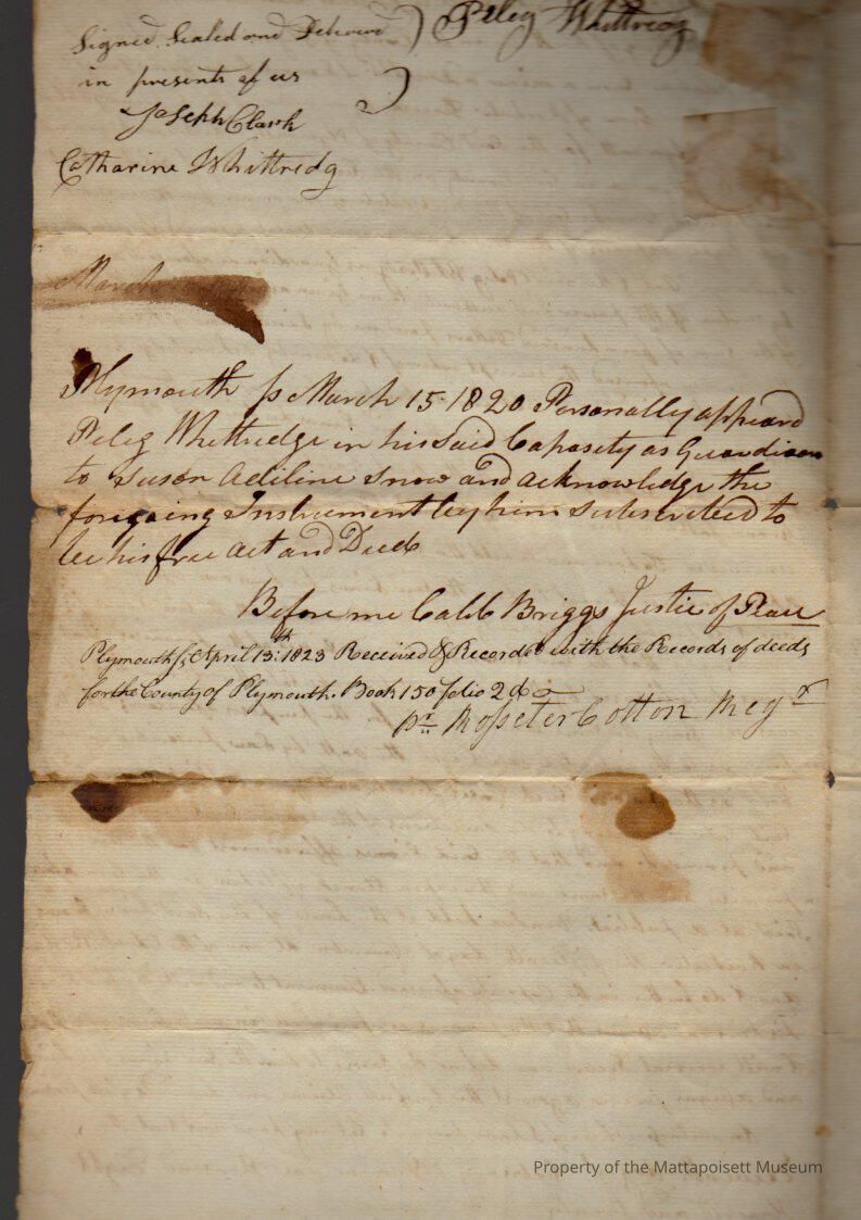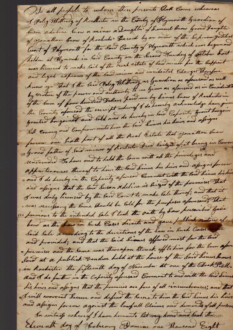 Peleg Whittridge to Linus Snow, for $400, book 150, folio 2.Collection