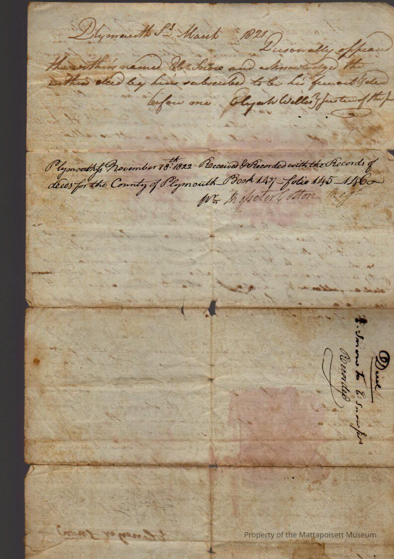Ebenezer Snow to Ebenezer Snow Jr., land and buildings in Mattapoisett for $200, book 147, folio 145.Collection