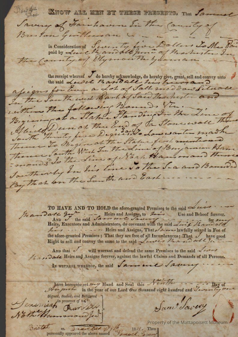 Samuel Savory of Fairhaven to Lewis Randall Jr. $75 of salt meadow in south west Rochester.Collection