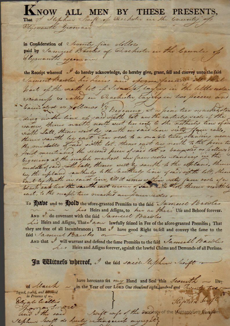 Stephen & Eunice Swift to Samuel Bowles, swamp for $75, book 156, folio 290.Collection