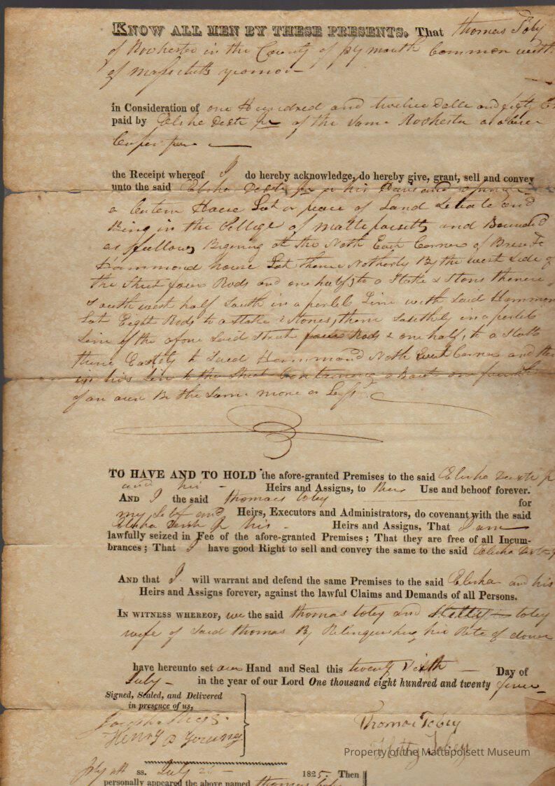 Thomas Tobey to Eliha Hammond for $112.50, book 164, folio 176.Collection