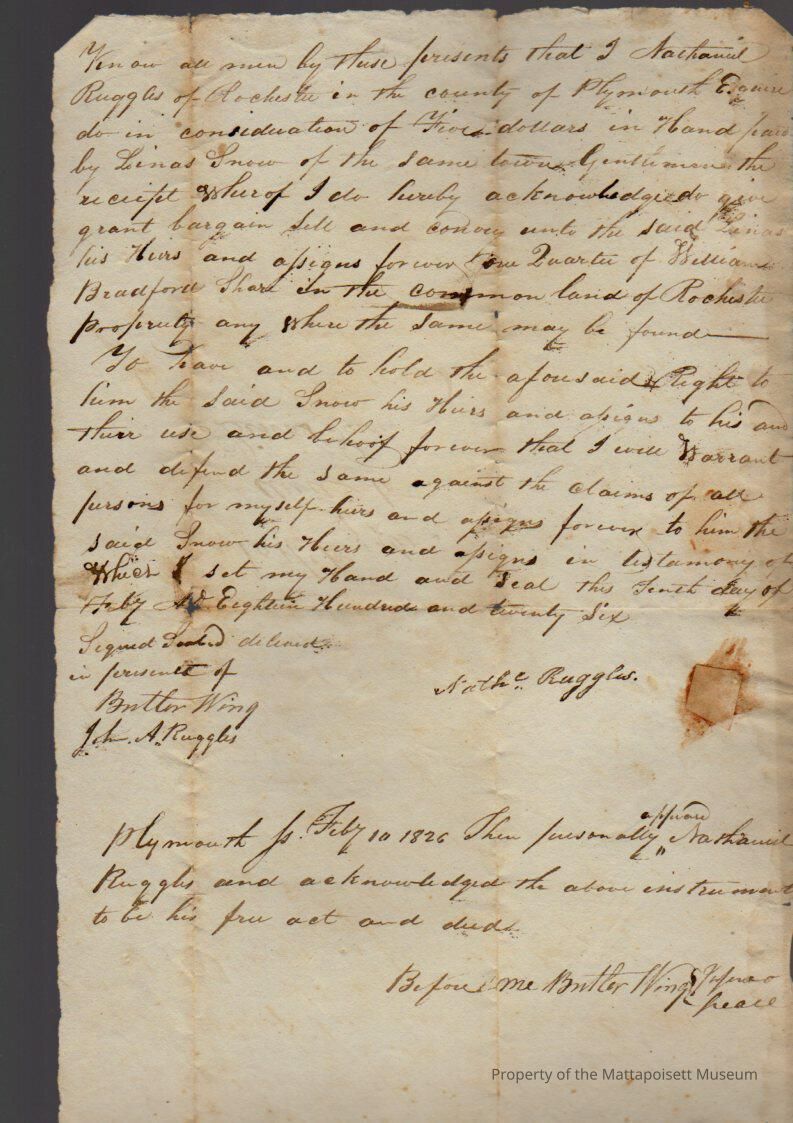 Nathaniel Ruggles to Linus Snow for $5.Collection