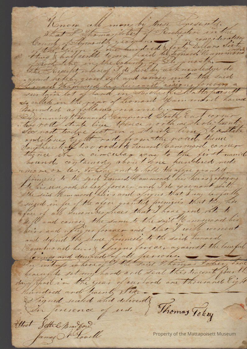 Thomas Tobey to Leonard Hammond, for $140.621/2, book 158, folio 1.Collection