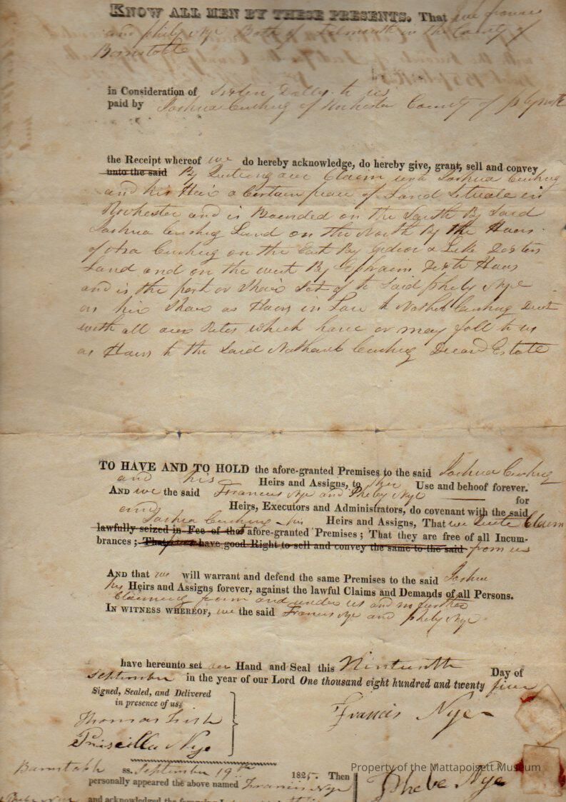 Francis & Phebe Nye to Joshua Cushing, for $16, book 151, folio 163.Collection