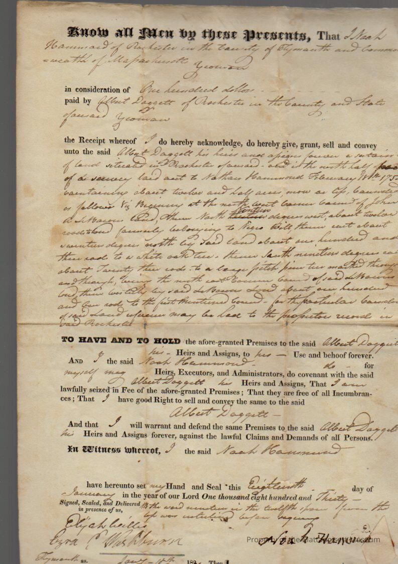 Noah Hammond to Albert Daggett, for $100, book 172, folio 100.Collection