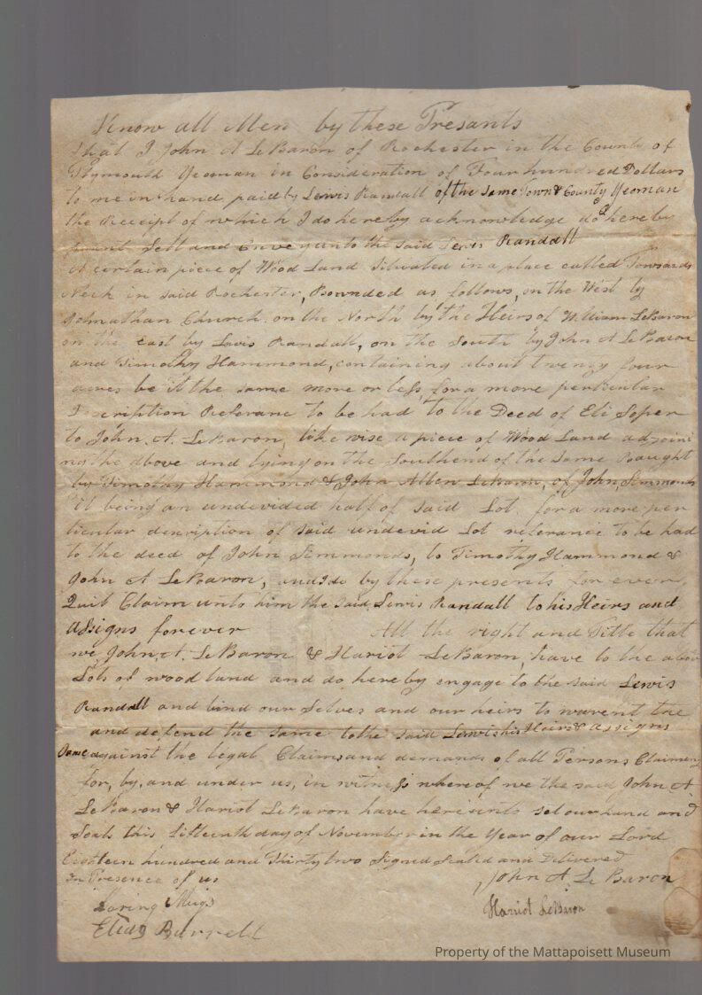 John A. LeBaron to Lewis Randall, for $400, book 653, folio 142-143.Collection