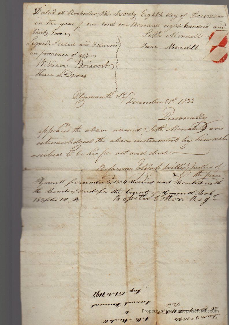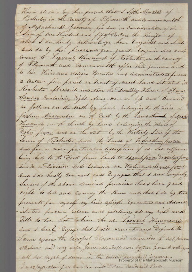 Seth & Jane Mendell to Leonard Hammond, eight acres for $150, book 183, folio 12.Collection