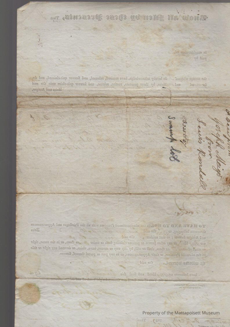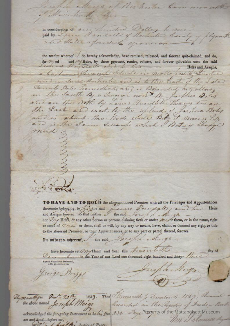 Joseph Meigs to Lewis Randall, swamp in Mattapoisett for $100, book 235, folio 37.Collection
