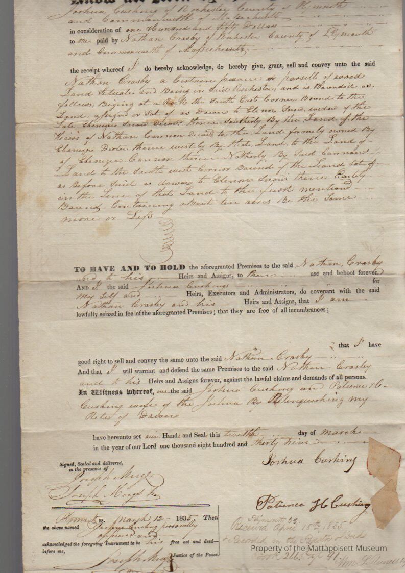 Joshua & Patience H. Cushing to Nathan Crosby, woodland for $150, book 266, folio 91.Collection
