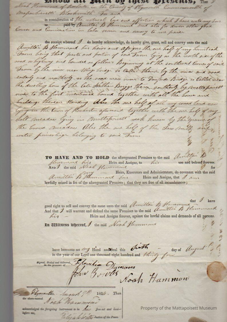 Noah Hammond (blacksmith) to Amittai Hammond, for love and affection for son, 1/2 the homestead and farm, book 182, folio 92.Collection