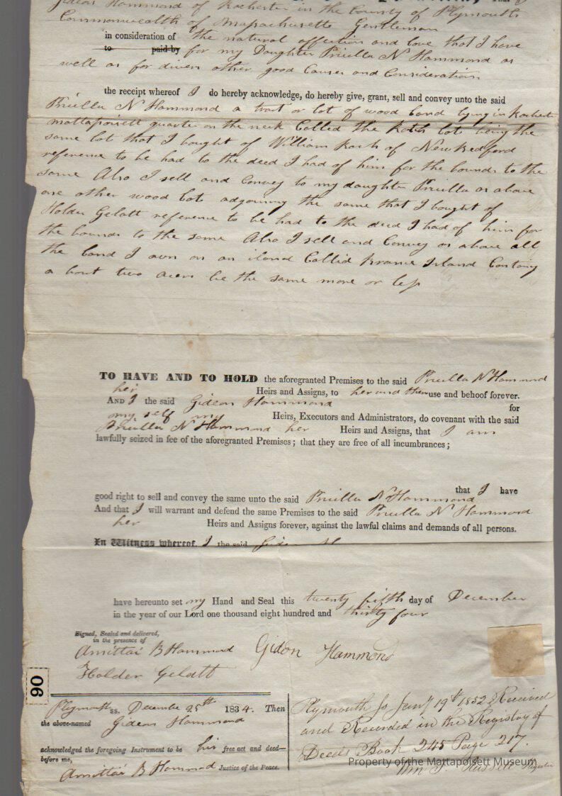 Gideon Hammond to daughter Pricilla N. Hammond, for love & affection for daughter, book 245, folio 217.Collection