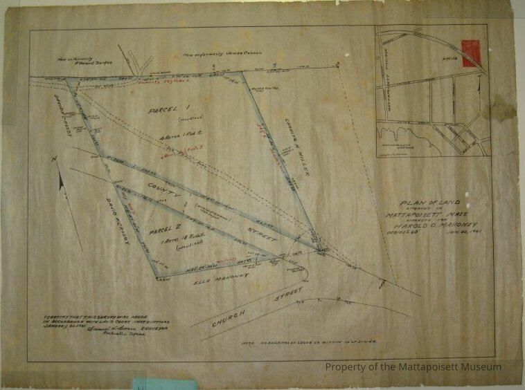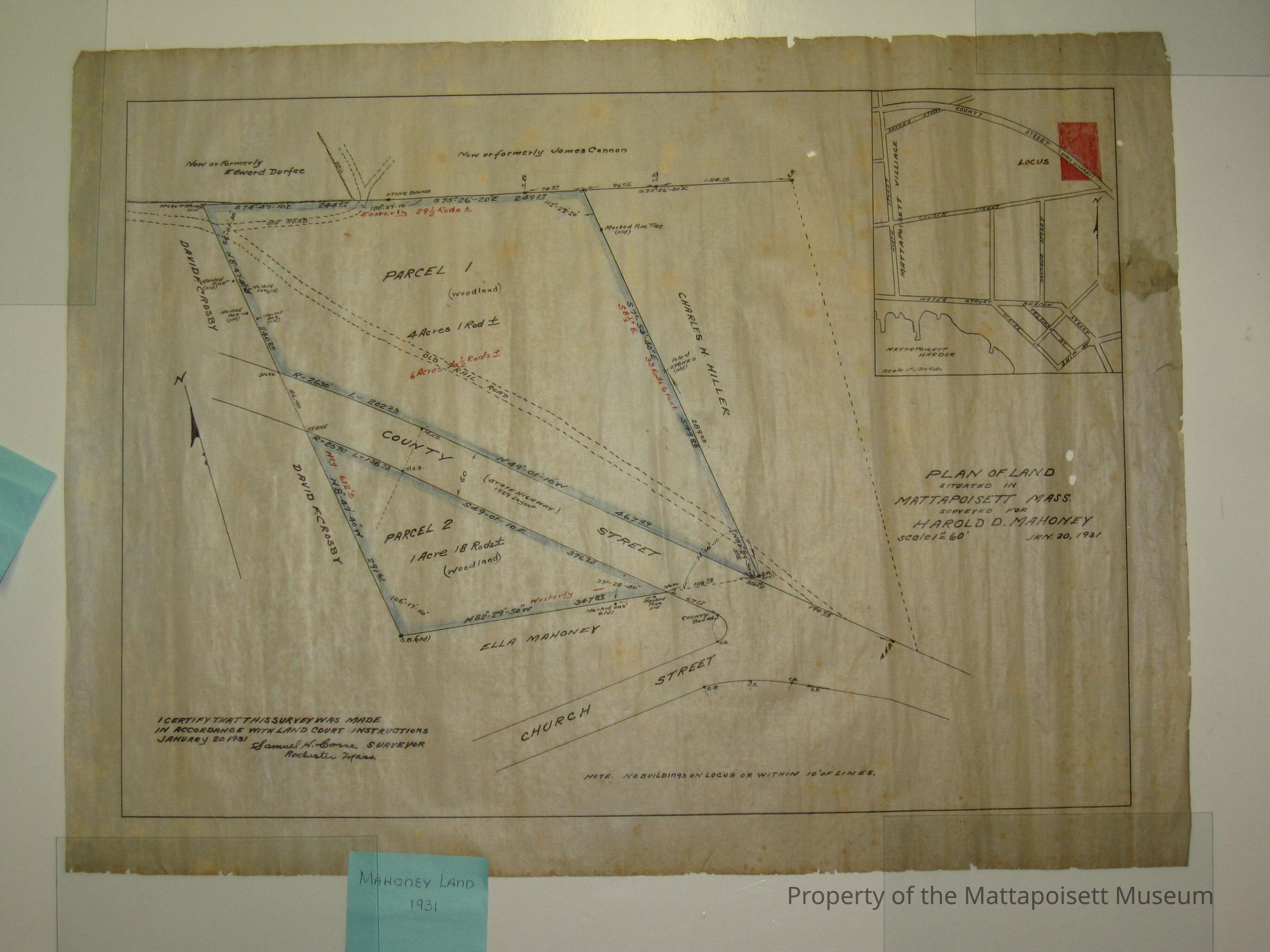 Circa 1930. Plan of land situated in Mattapoisett, surveyed for Harold D. Mahoney, Jan. 20, 1931. Also marked with MP-14Collection