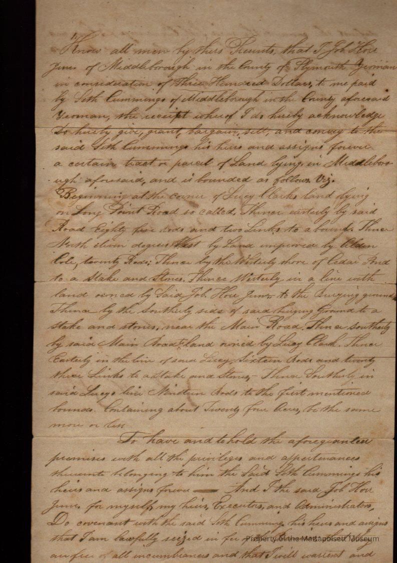 Job Jr. & Rhoda Harr of Middleboro to Seth Cummings, for $300.Collection