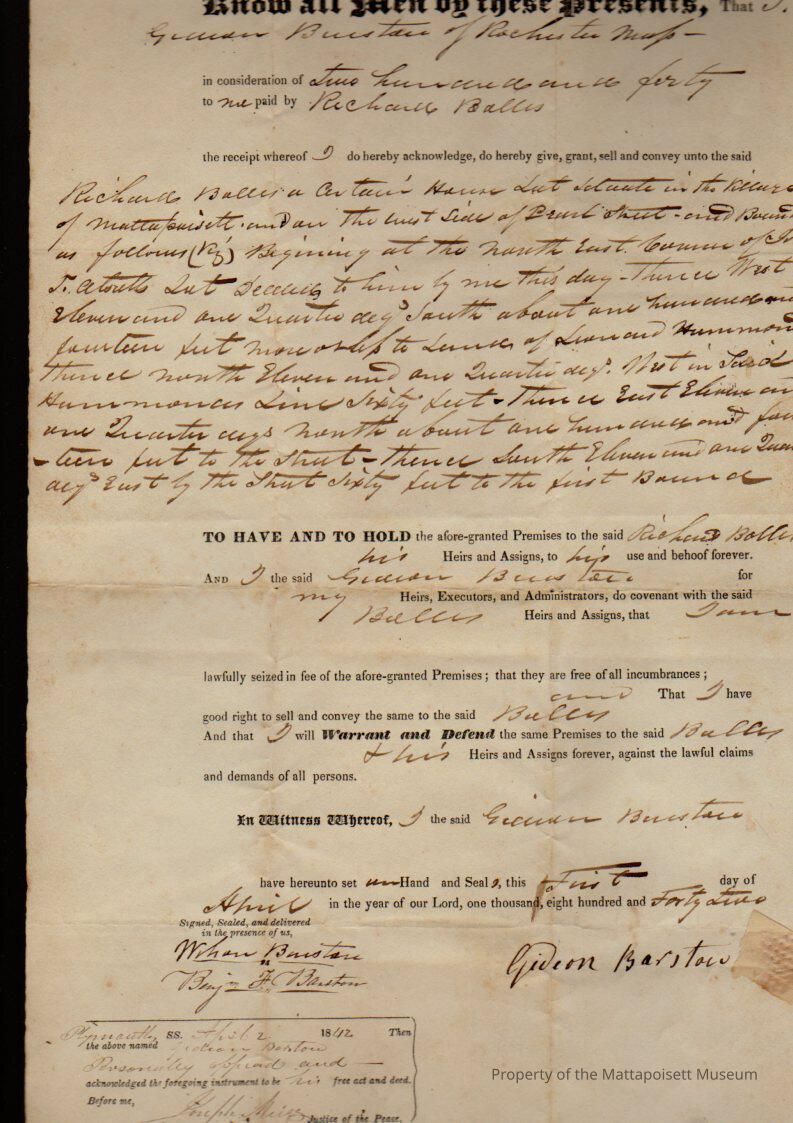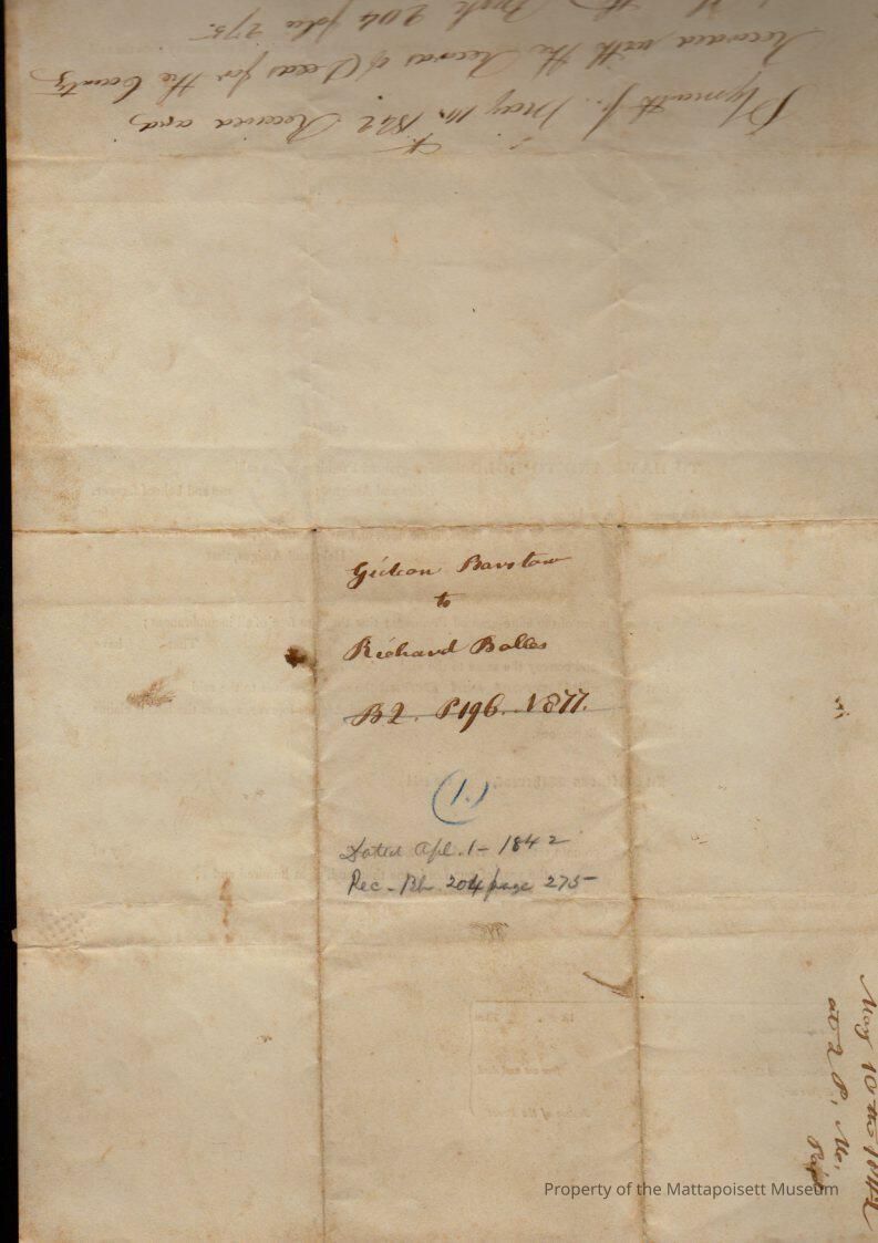 Gideon Barstow to Richard Bolles, house lot in Mattapoisett Villiage, west of Pearl Street, book 204, folio 275.Collection