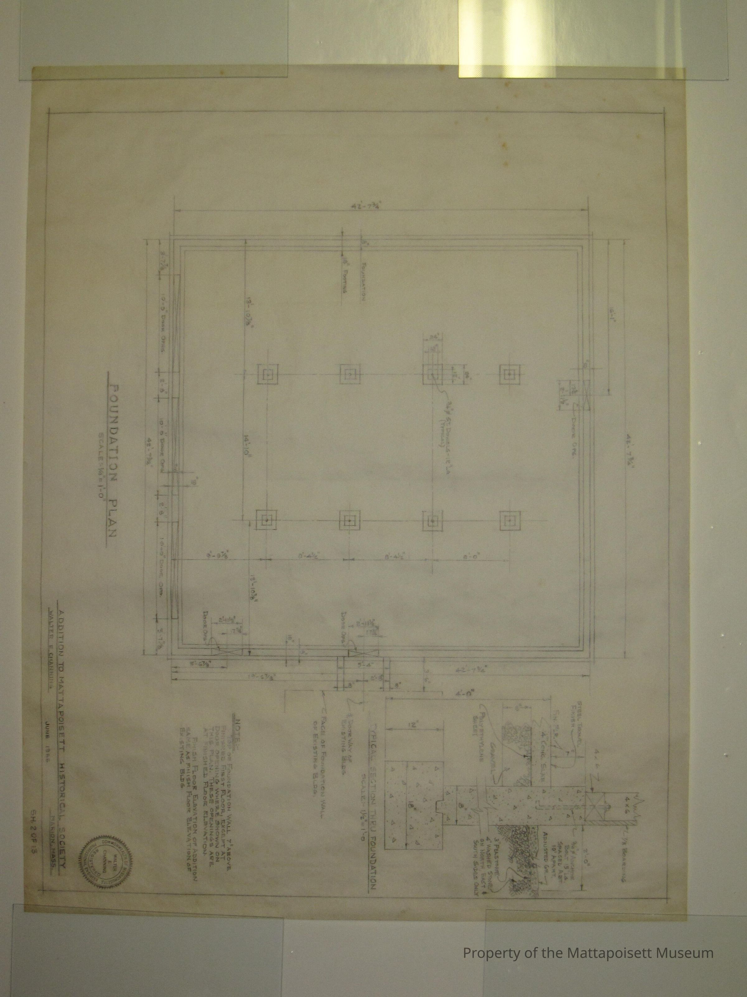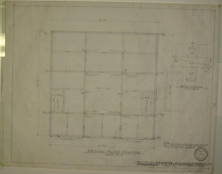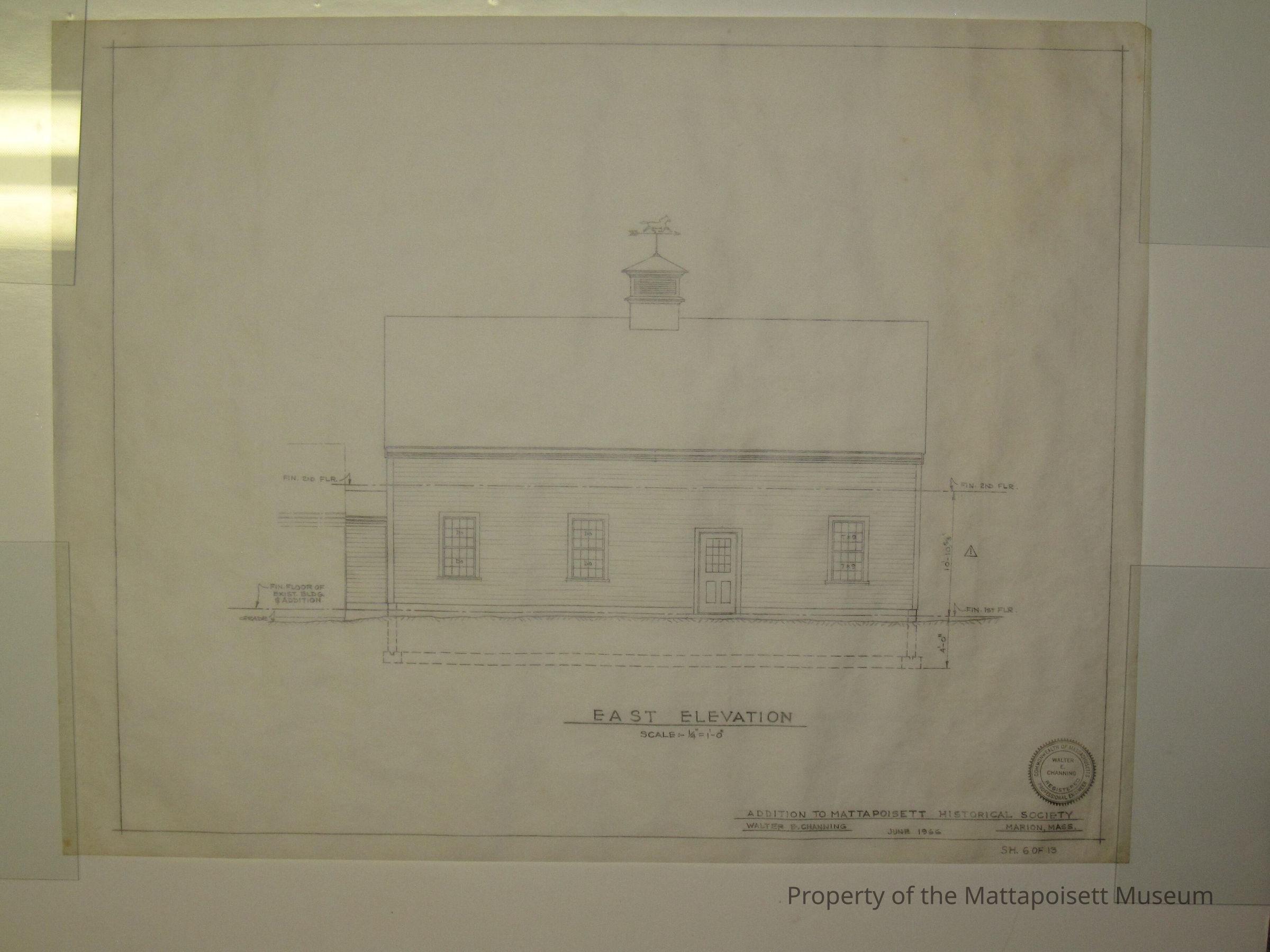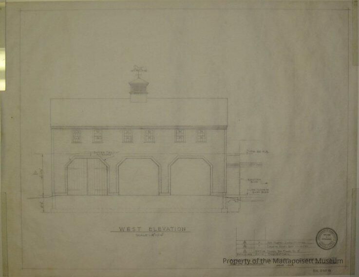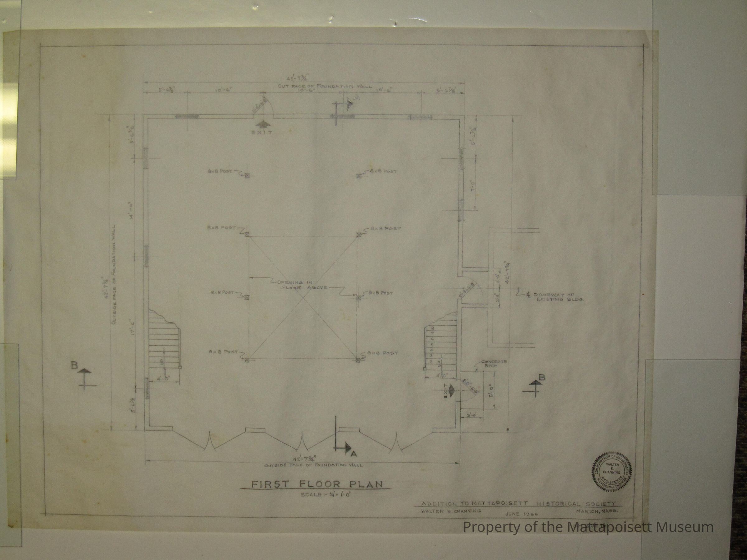 13 plan pages of carriage shed addition to Mattapoisett Historical Society by Walter E. Channing. June 1966.Collection