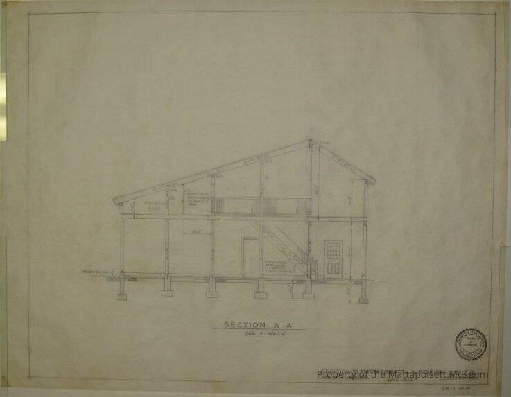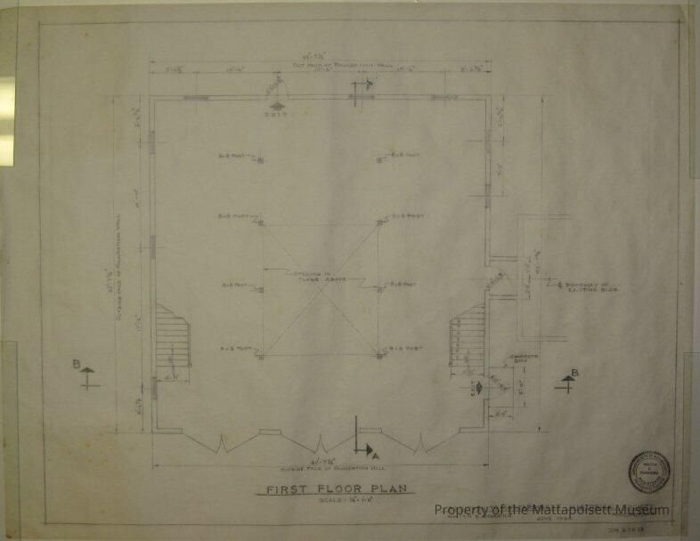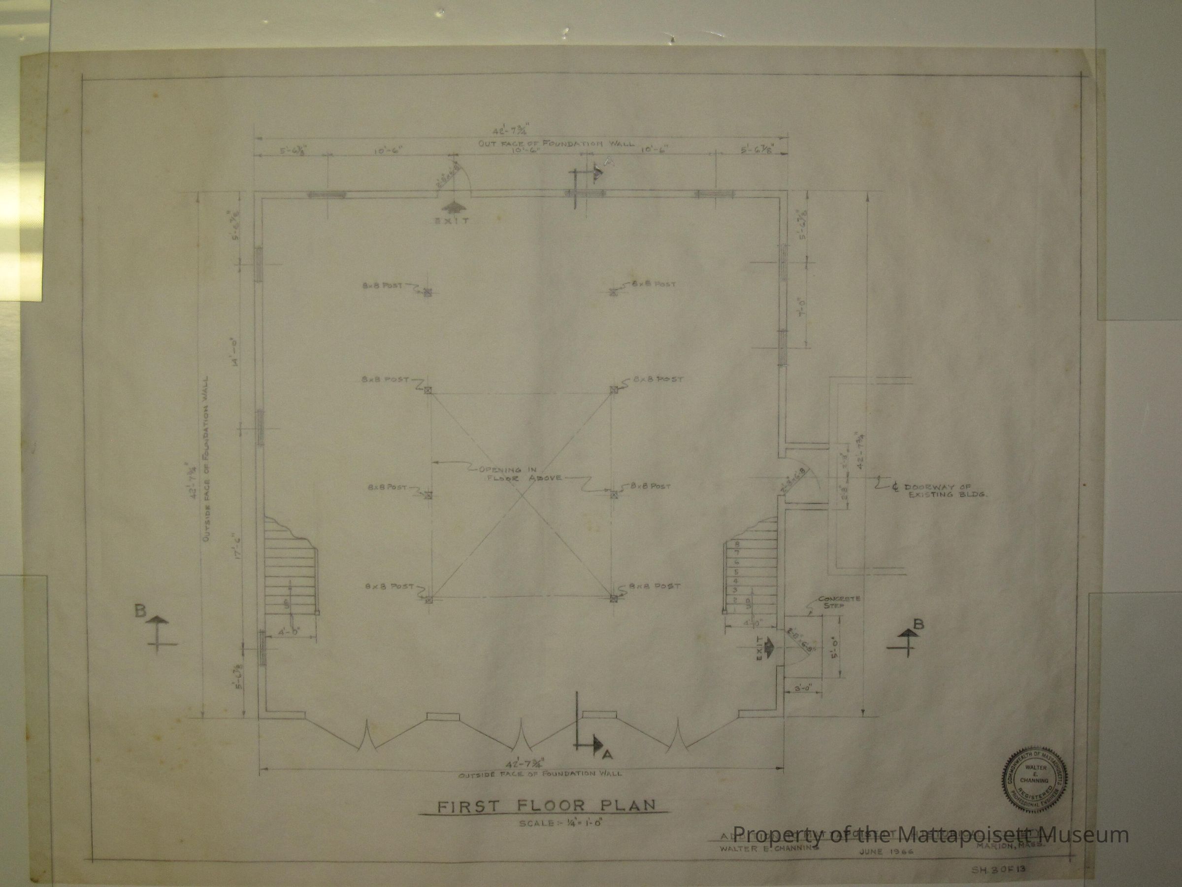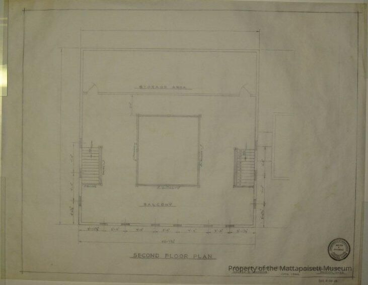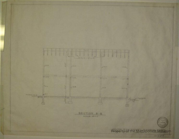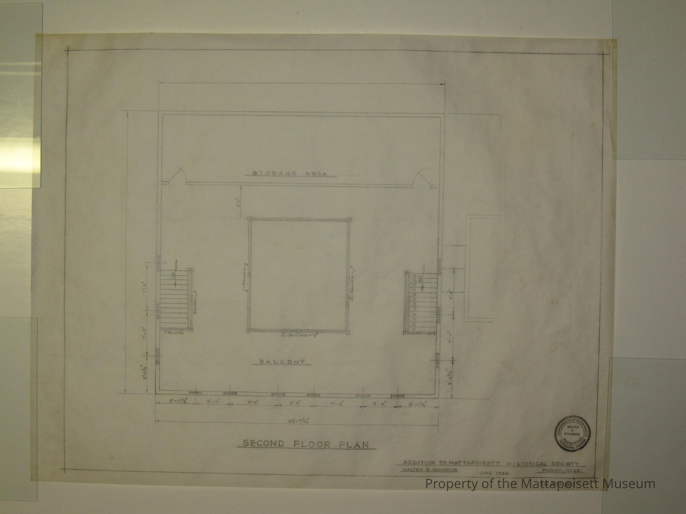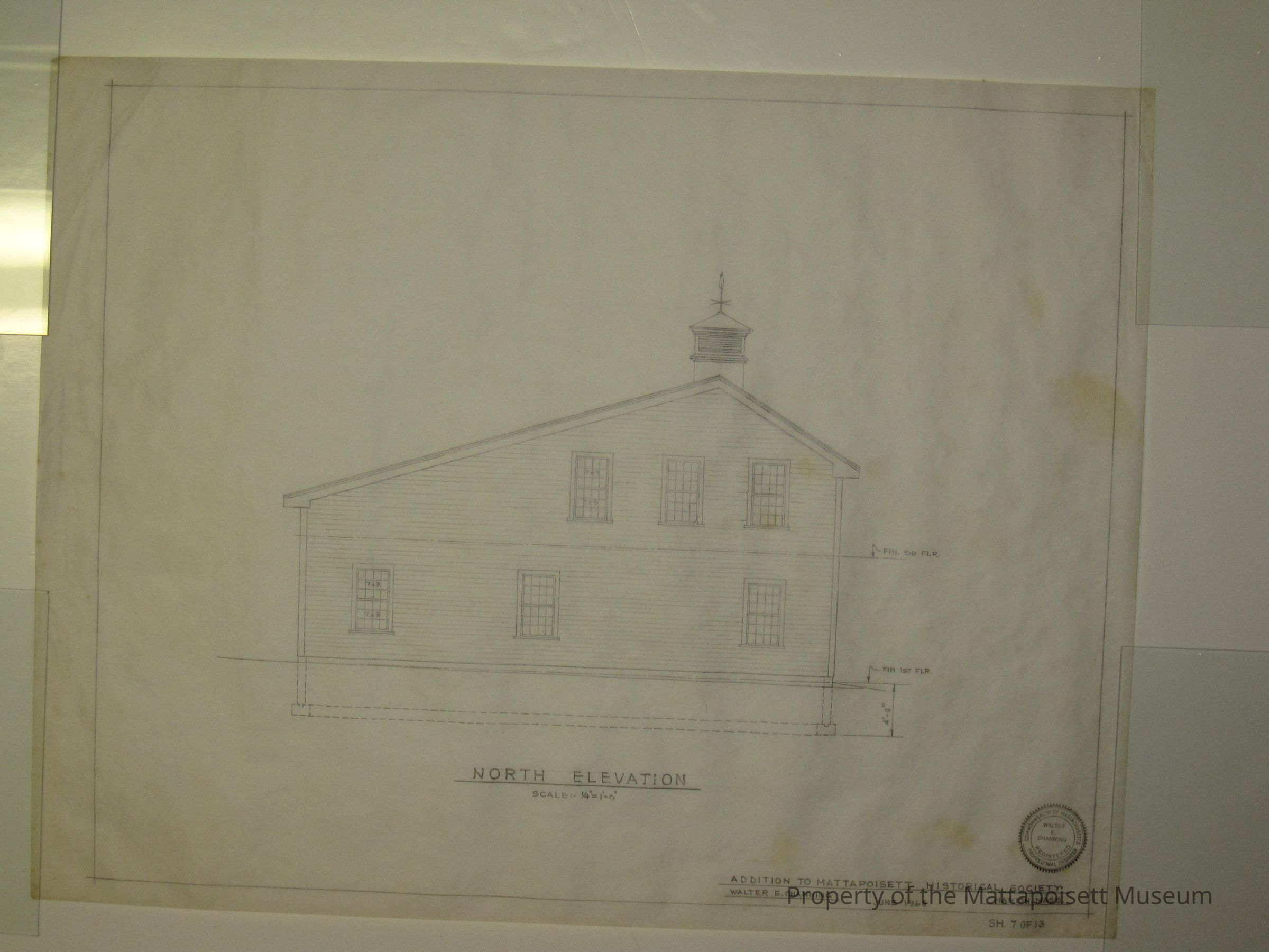 13 plan pages of carriage shed addition to Mattapoisett Historical Society by Walter E. Channing. June 1966.Collection