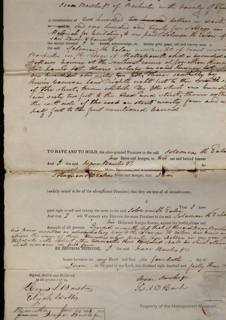Isaac Bowles Jr. to Solomon H. Eaton, $200 in work and $125 in material for building, book 207, folio 286.Collection