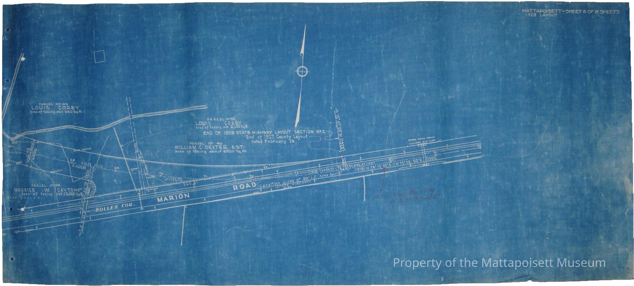 Plan of road in the town of Mattapoisett.1929 plan of Marion Road. 8 sheets. 2-4 one copy each, 7-8 two copies each.Collection