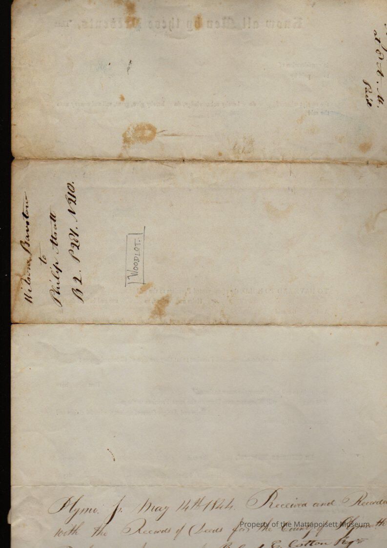 Wilson Barstow to Philip Atsatt, 1/2 woodlot for $100, book 2, page 281.Collection