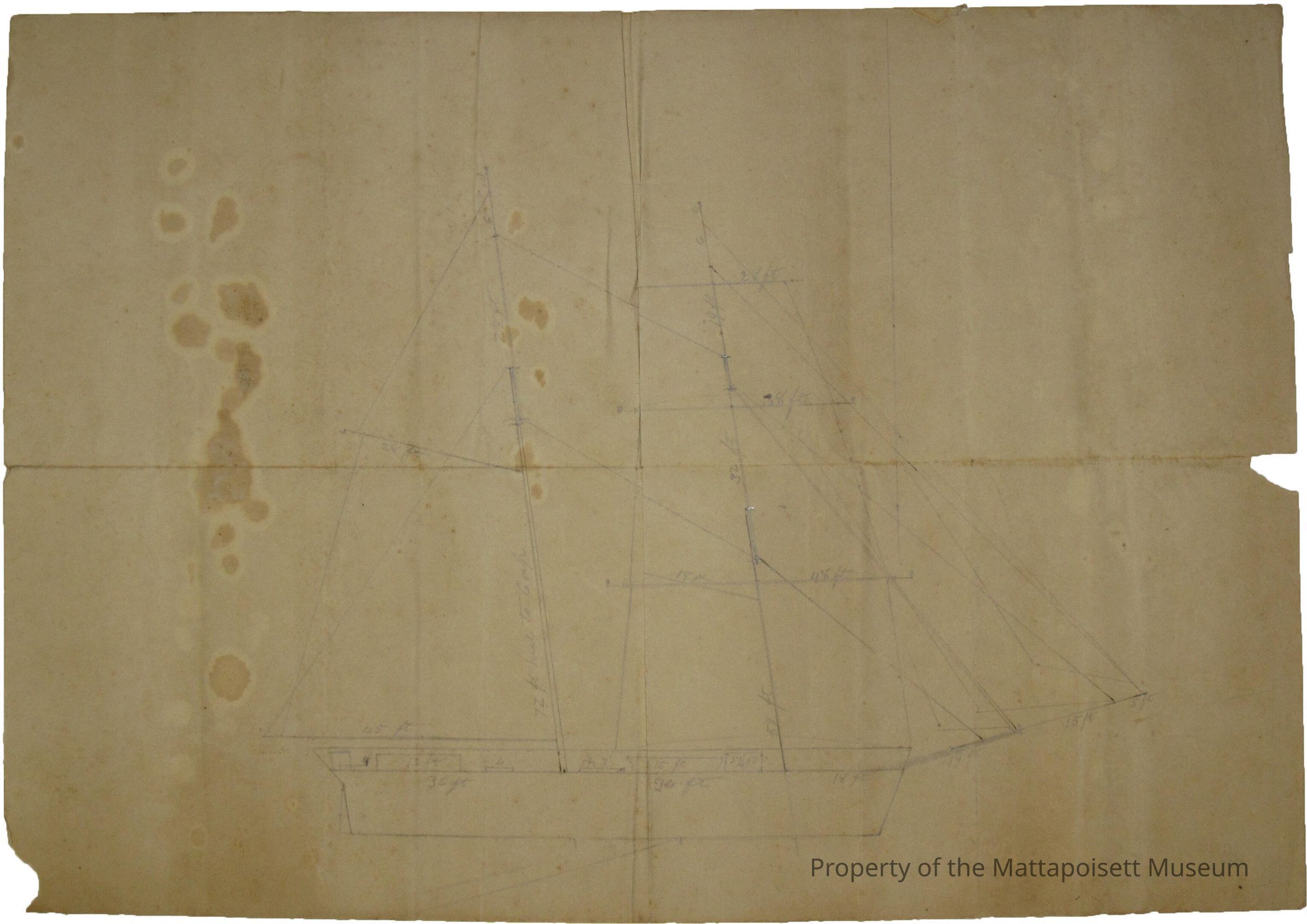 Draft of Brig Osceola. Brig of New Bedford. Depart 1850, return 1851. Charles H. Maxim, Master. Shipbuilders of Mattapoisett by Charles S. Mendell, Jr. indicates a Brig Osceola II built in 1846. 195 T., J. Holmes Jr. & Bro. Mattapoisett/New Bedford.Acquisition