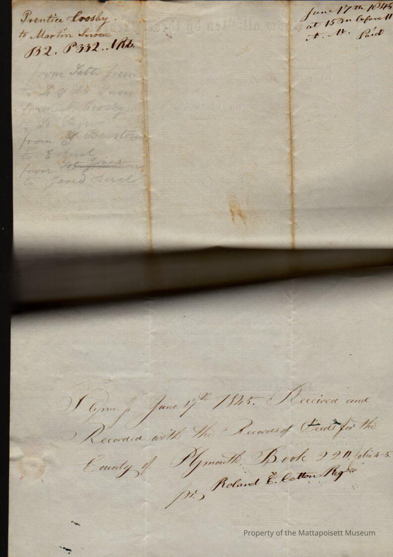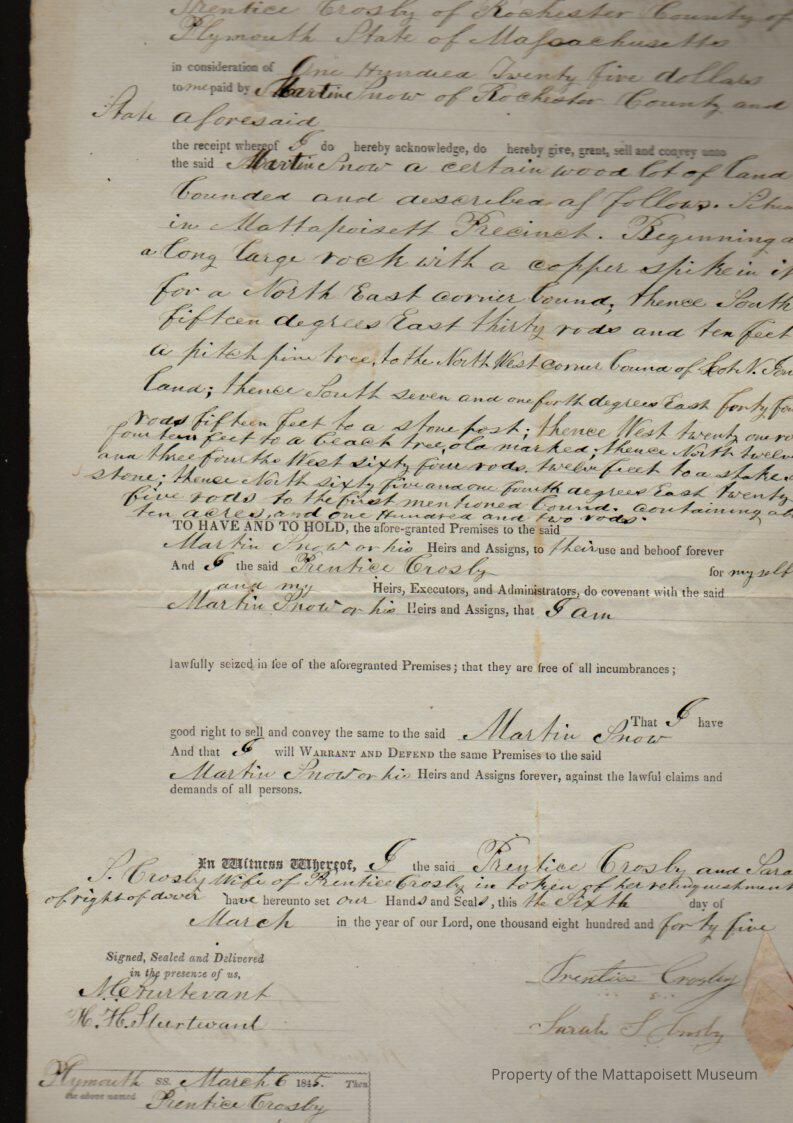 Prentice & Sarah D. Crosby to Martin Snow, woodlot for $125, book 220, folio 4-5.Collection