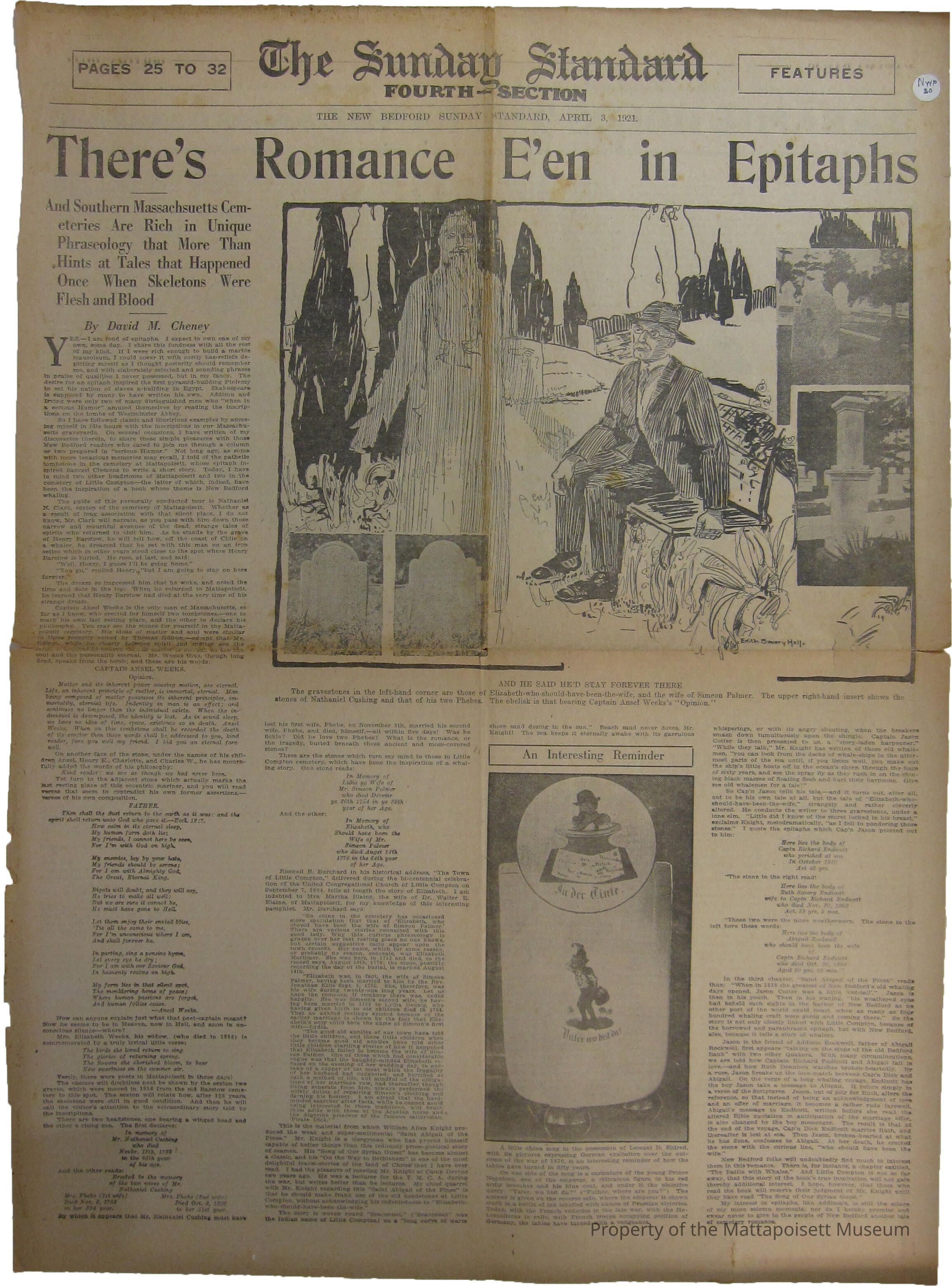 The Sunday Standard, Fourth-section, pages 25-26 The New Bedford Sunday Standard, April 3, 1921. NWP20Collection