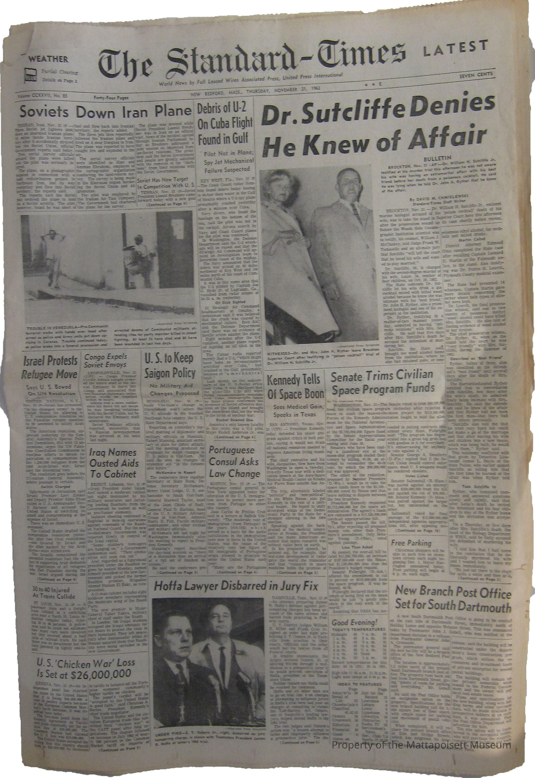 The Standard-Times. Vol. CCXXVII, No. 85. New Bedford, Mass, Thursday, November 21, 1963.Collection