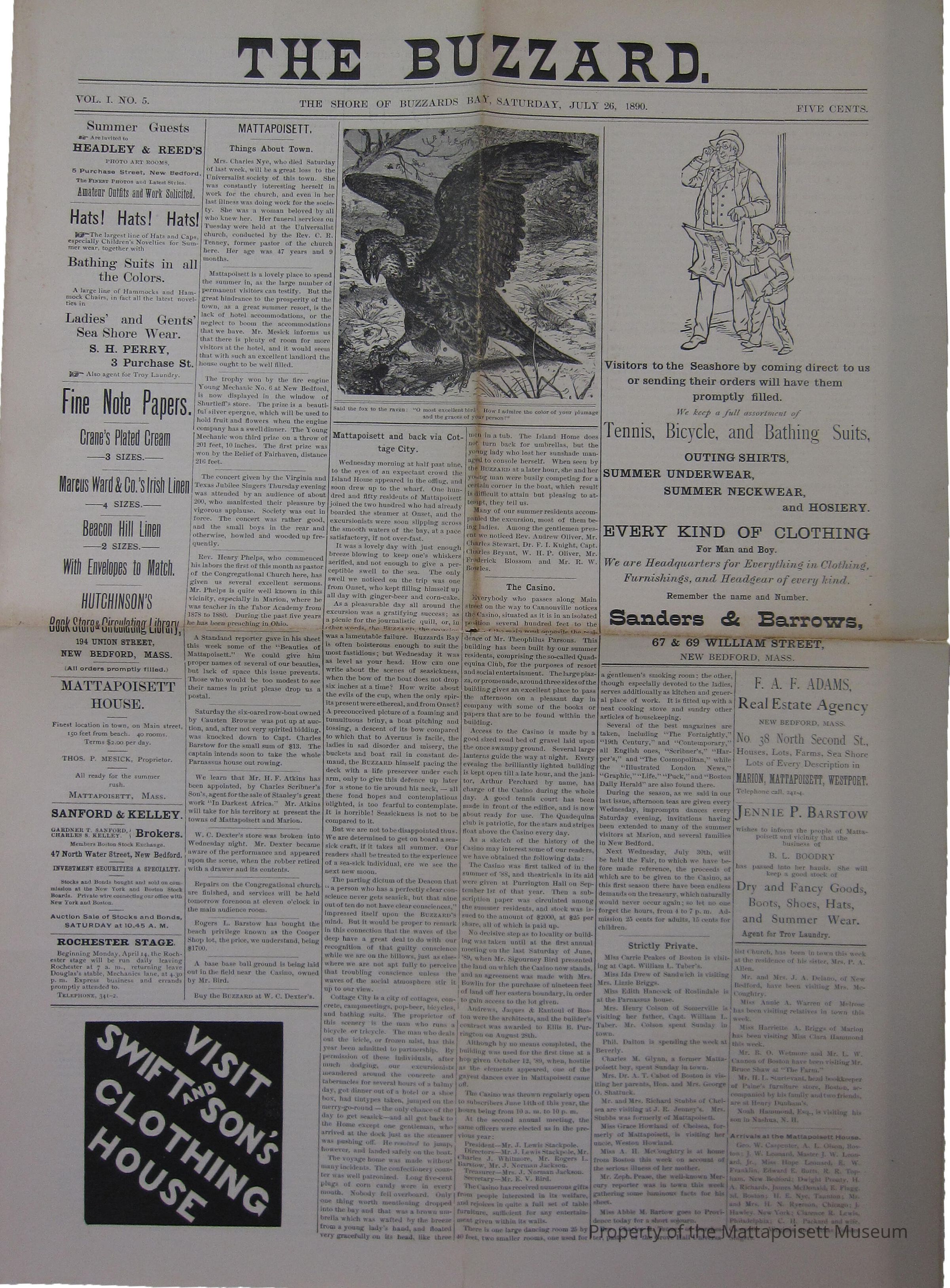 The Buzzard. Vol. I, No. 5. The Shore of Buzzard’s Bay, Saturday, July 26, 1890.Acquisition