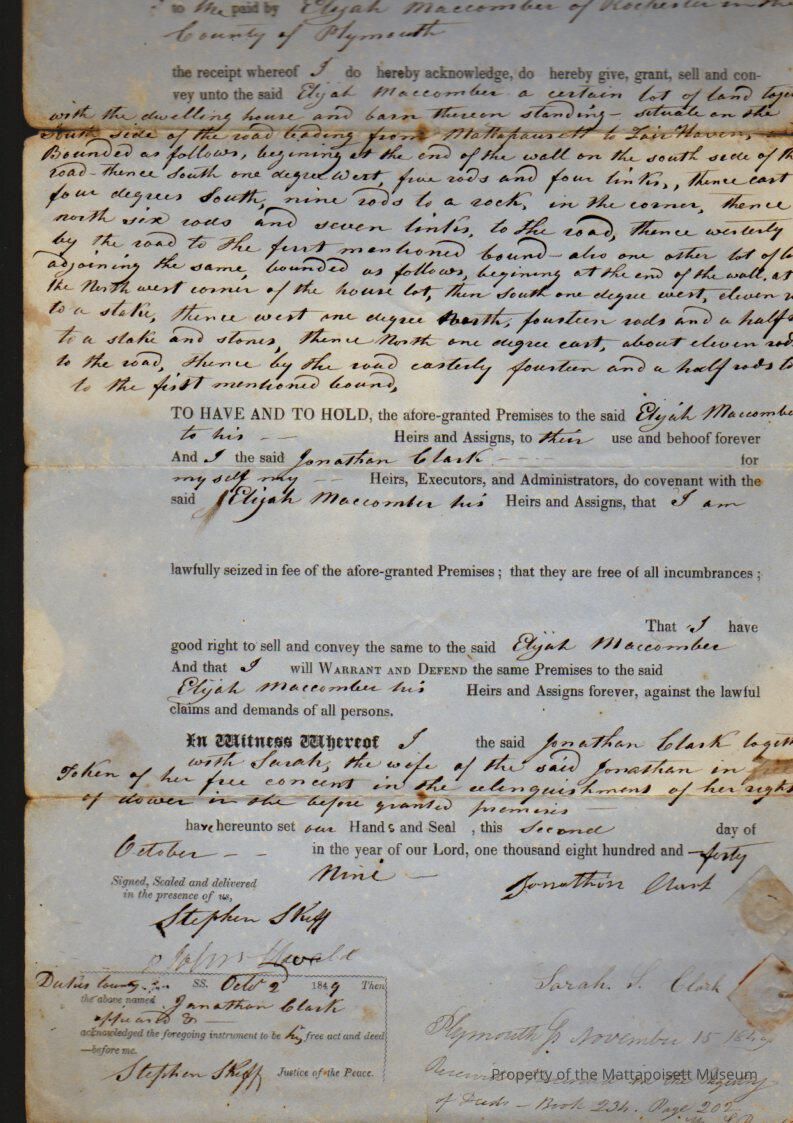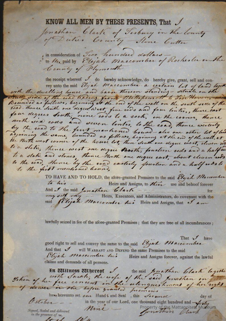 Jonathan & Sarah S. of Tisbury to Elijah Macomber, land, house and barn for $200, book 236, page 202.Collection