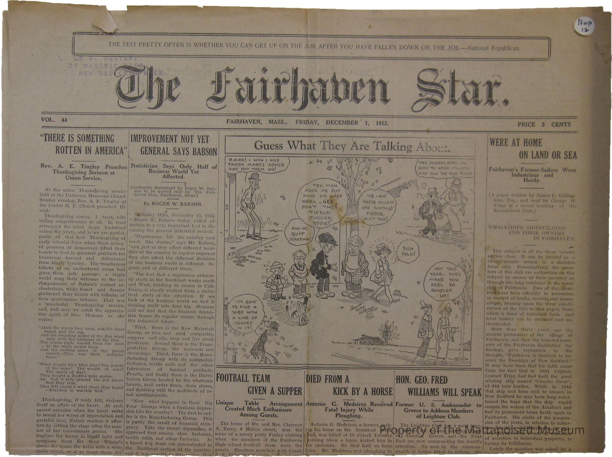 The Fairhaven Star. Vol. 44. Fairhaven, Mass. Stamped with L. Le B. Dexter.Acquisition