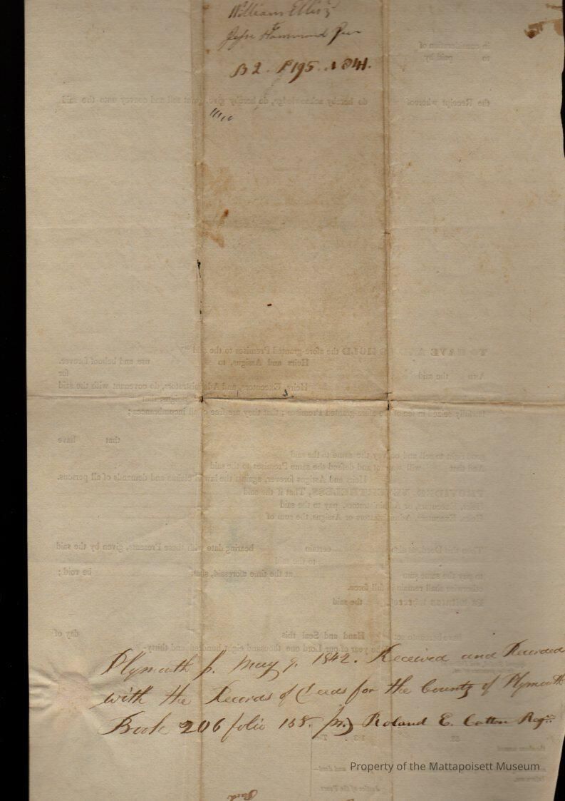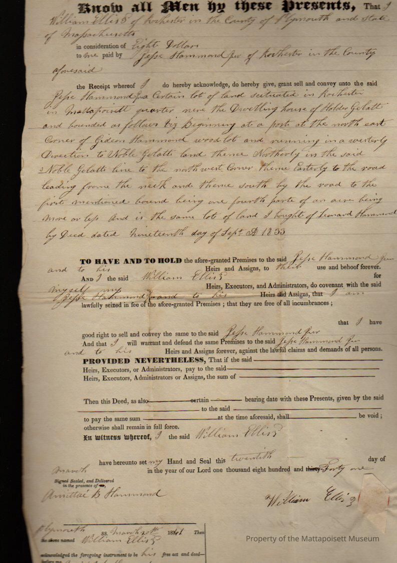 William Ellis 3rd to Jesse Hammond Jr., land in Mattapoisett quarter for $8.Collection