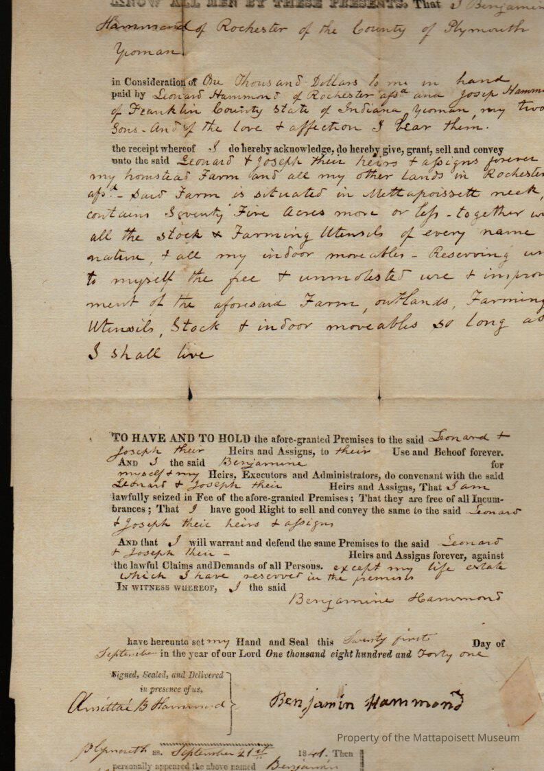 Benjamin Hammond to Leonard Hammond & Joseph Hammond, 75 acres of homestead for $1,000.Collection
