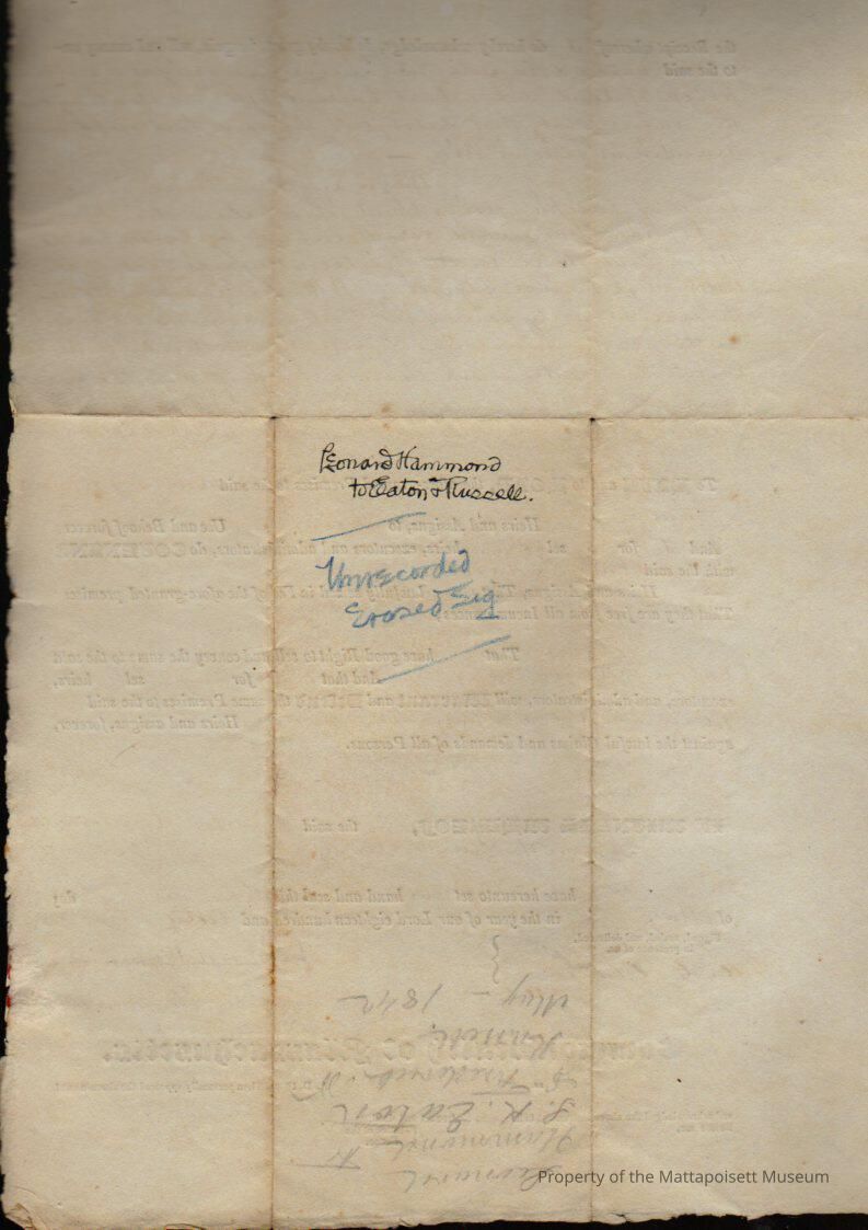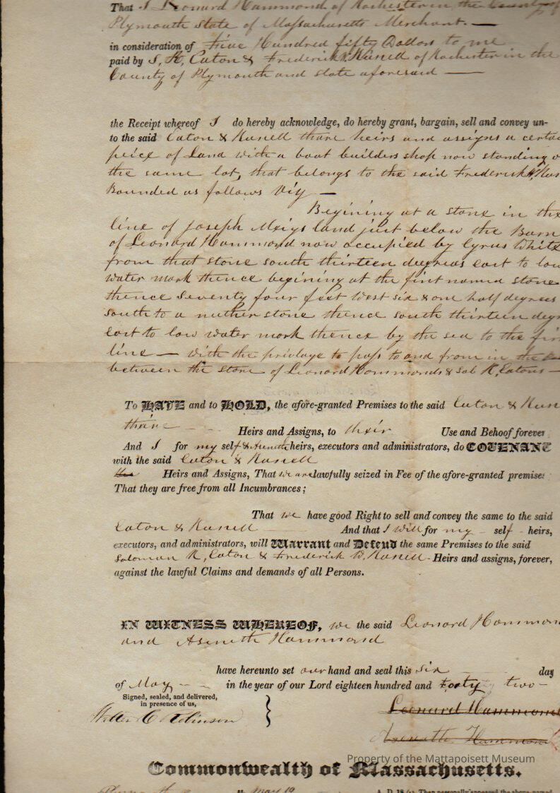 Leonard & Areneth Hammond to Solomon K. Eaton & Frederick D. Russell, land and boat builder's shop for $550.Collection